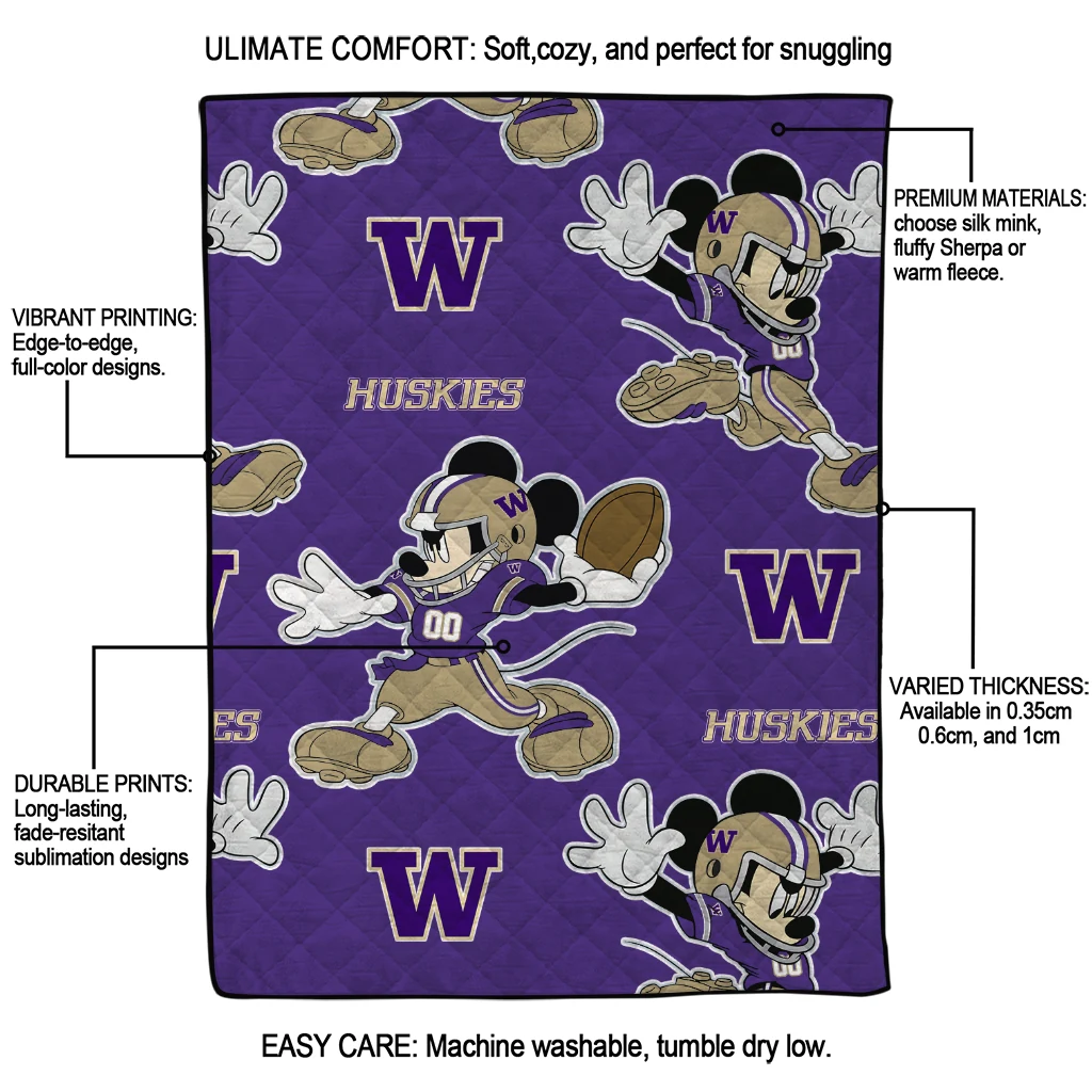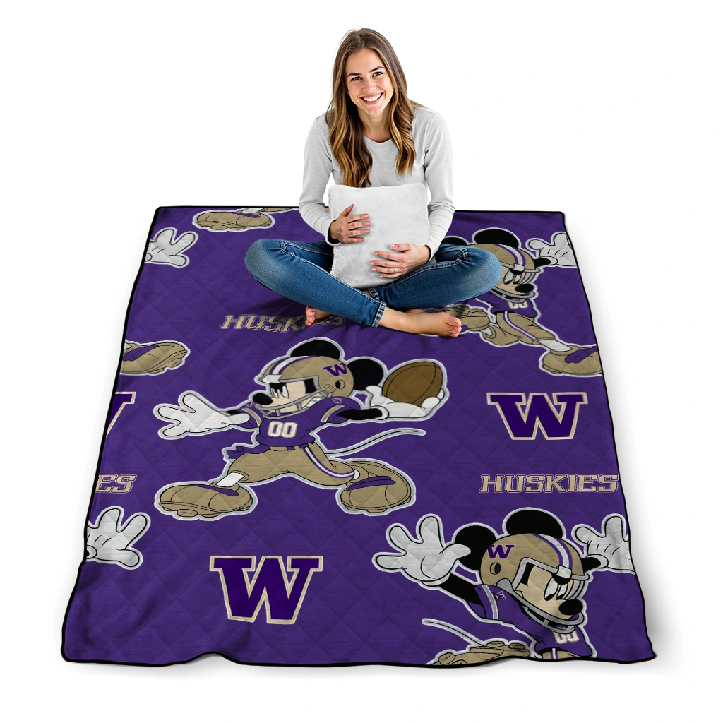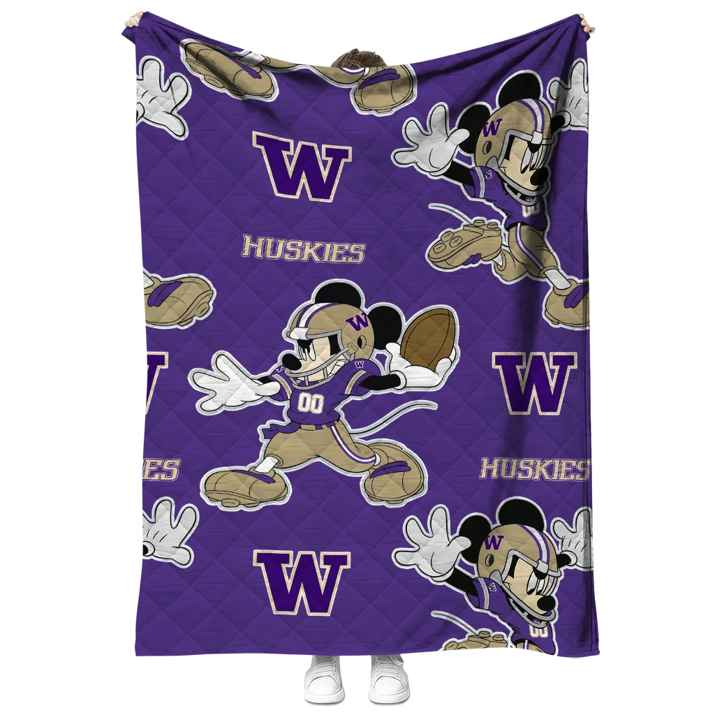 Personalized Washington Huskies Mickey Football Purple Quilt Blanket