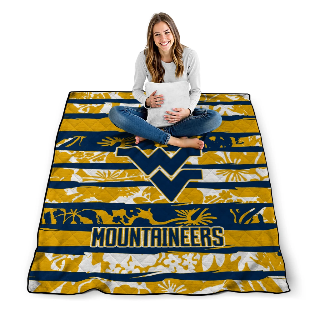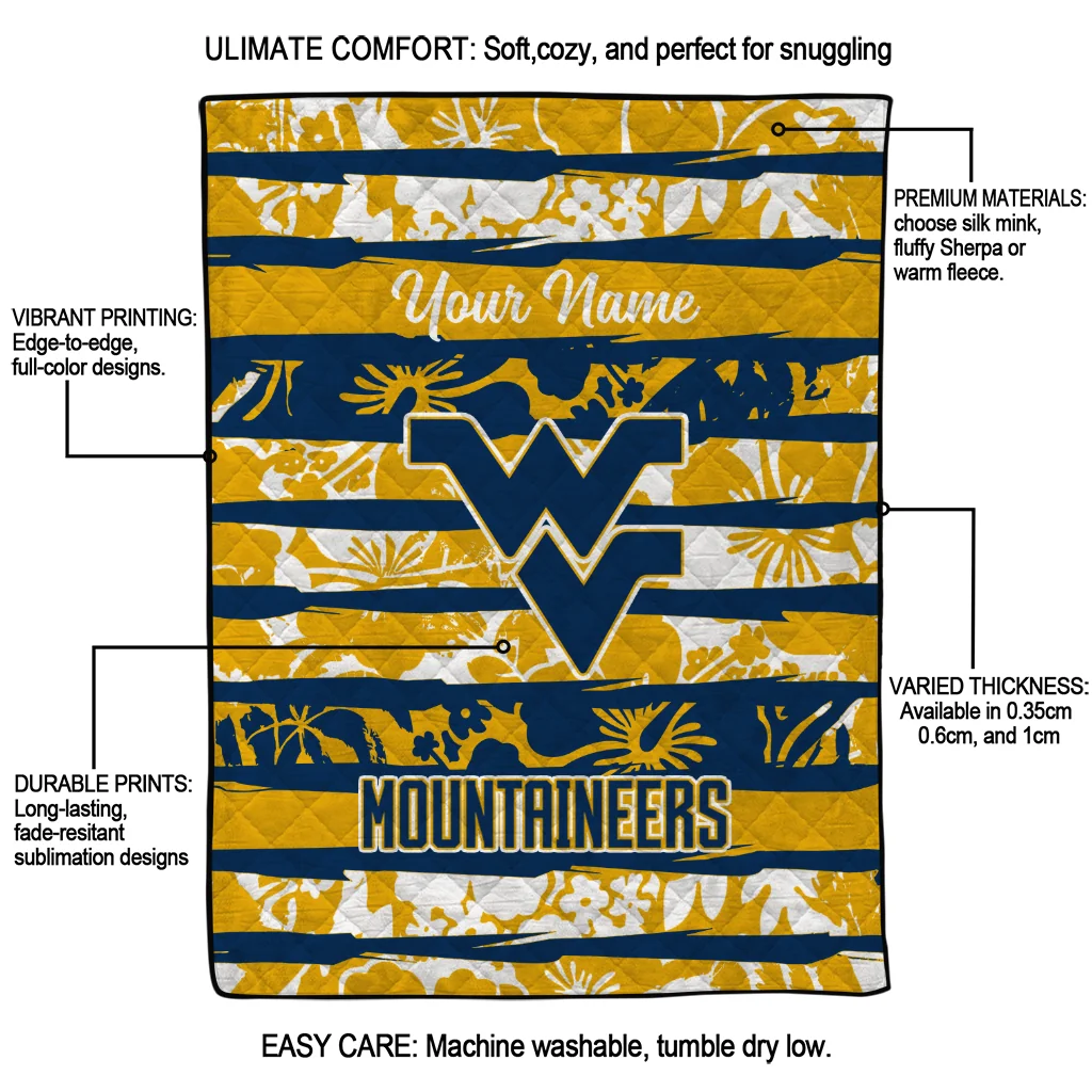 Personalized West Virginia Mountaineers Layered Florals Blue White Quilt Blanket