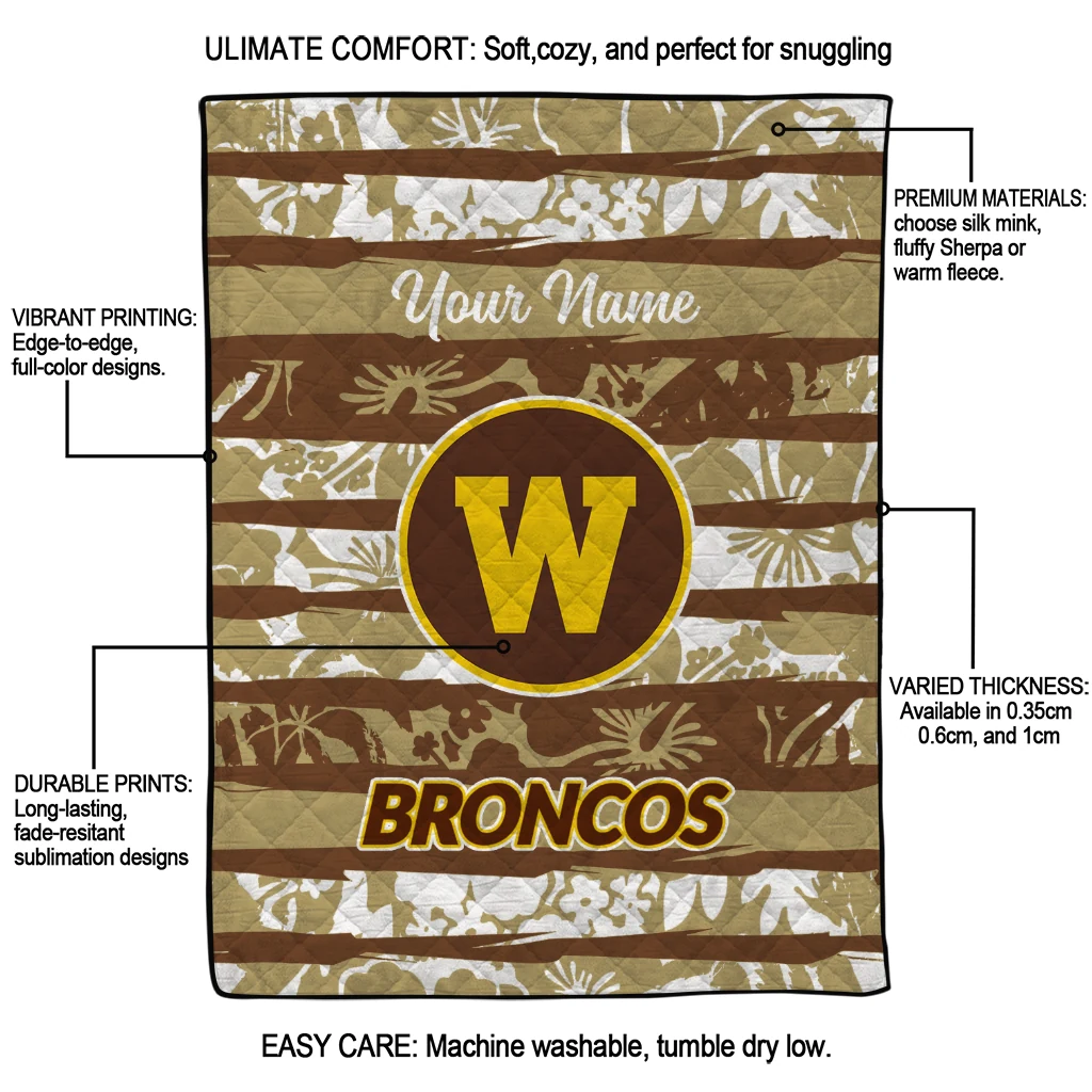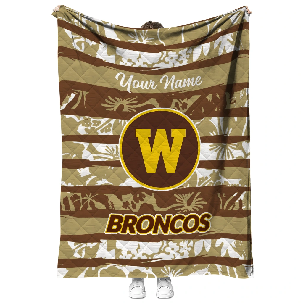 Personalized Western Michigan Broncos Layered Florals Brown White Quilt Blanket