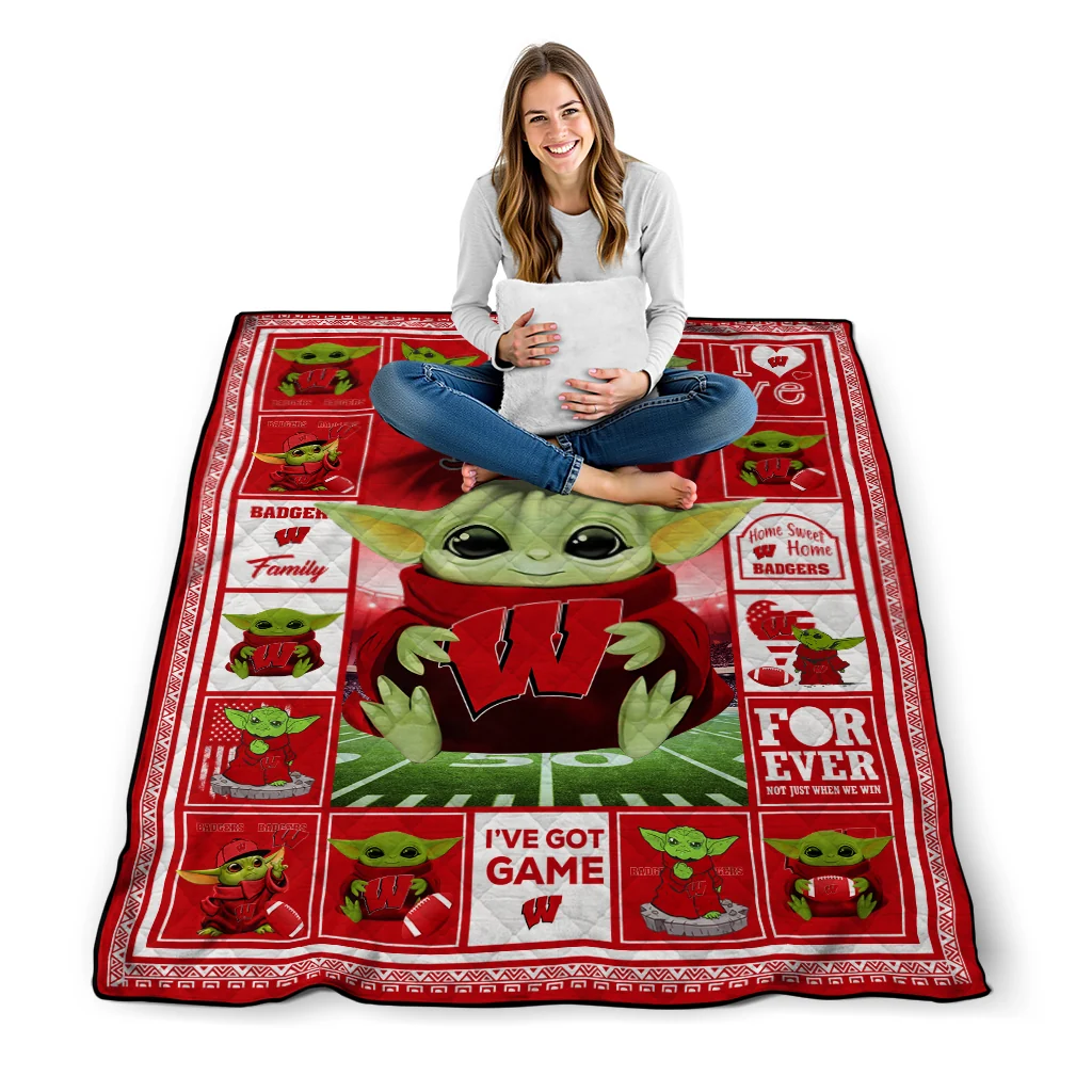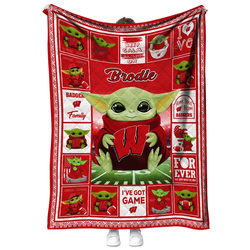 Personalized Wisconsin Badgers Yody Baby Pattern Red Quilt Blanket