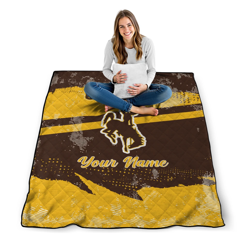 Wrap yourself in warmth and pride with the Personalized Wyoming Cowboys Brushstroke Layers Brown Quilt Blanket from the Wyoming Cowboys Blankets collection at Yes That Blanket. Made from 100% premium quilting-weight polyester blended with a touch of microfiber, this quilt offers a smooth, soft finish you’ll love. Choose between two quilting styles—Stipple or Diagonal—and enjoy the comfort of a cotton-filled layer inside that adds extra coziness for every season. The border is available in classic black or white, giving your design a clean, timeless edge.