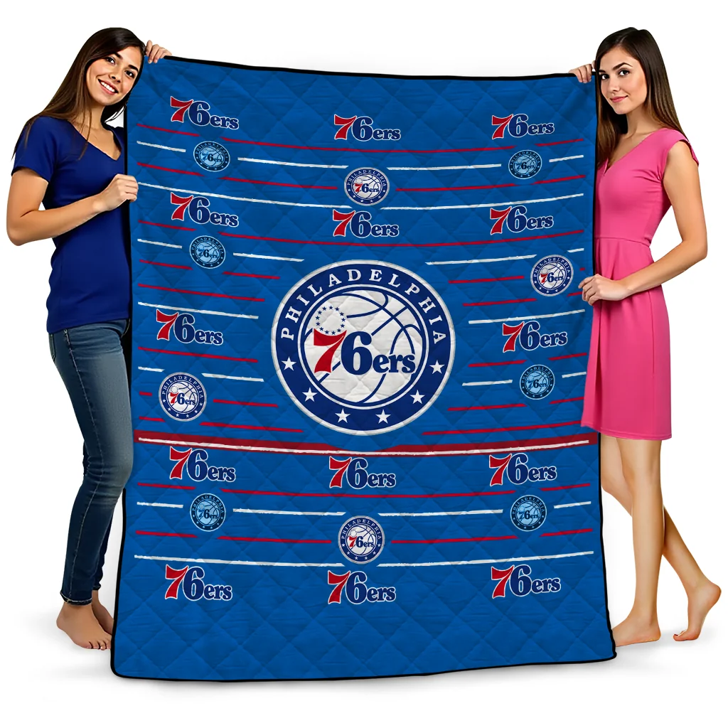 Wrap yourself in warmth and pride with the Philadelphia 76ers Handdrawn Stripes Blue Quilt Blanket from the Philadelphia 76ers Blankets collection at Yes That Blanket. Made from 100% premium quilting-weight polyester blended with a touch of microfiber, this quilt offers a smooth, soft finish you’ll love. Choose between two quilting styles—Stipple or Diagonal—and enjoy the comfort of a cotton-filled layer inside that adds extra coziness for every season. The border is available in classic black or white, giving your design a clean, timeless edge.