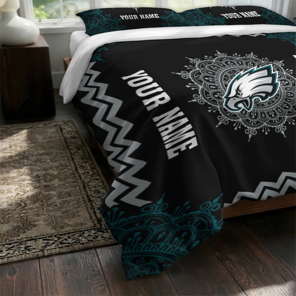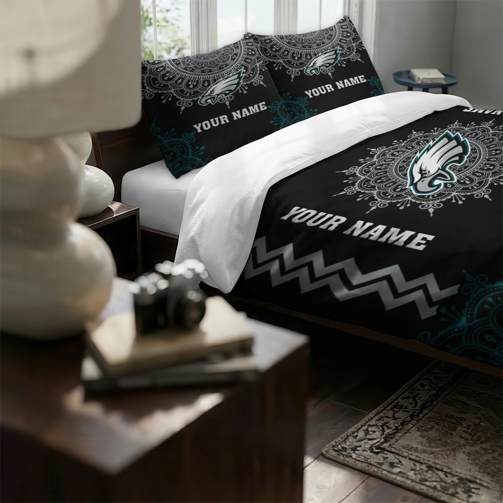 The Philadelphia Eagles Bedding Set – Custom Mandala Lacework Black White makes your room feel complete, warm, and overflowing with team pride. Designed for true fans, this bedding set from the Philadelphia Eagles Bedding Sets collection at Yes That Blanket turns your sanctuary into a cozy retreat where sport style meets ultimate relaxation. Experience the perfect blend of comfort and passion every night with a finish so soft, you’ll never want to leave.