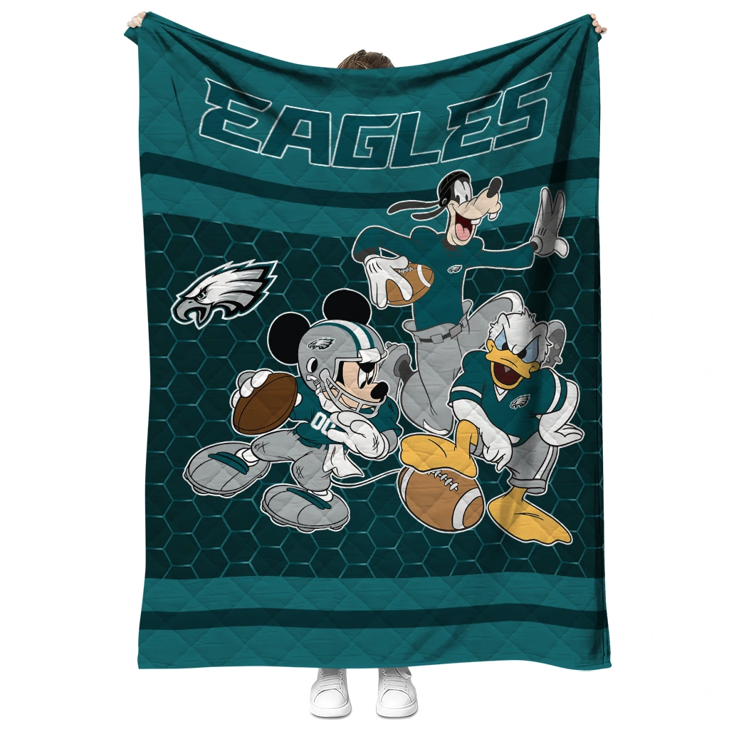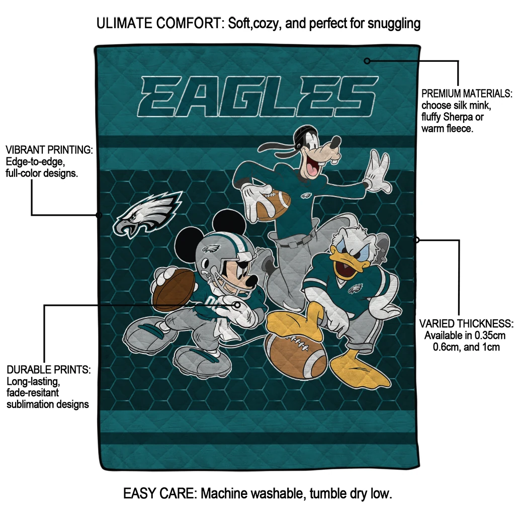 The Philadelphia Eagles Disney Football Green Quilt Blanket is more than a blanket—it’s everyday comfort, thoughtfully made. Crafted from premium quilting fabric with a soft microfiber touch, it offers a smooth hand-feel and lasting coziness. Layered quilting with a cotton-filled core provides adaptable warmth across seasons while maintaining a clean, tailored look on your bed or sofa.