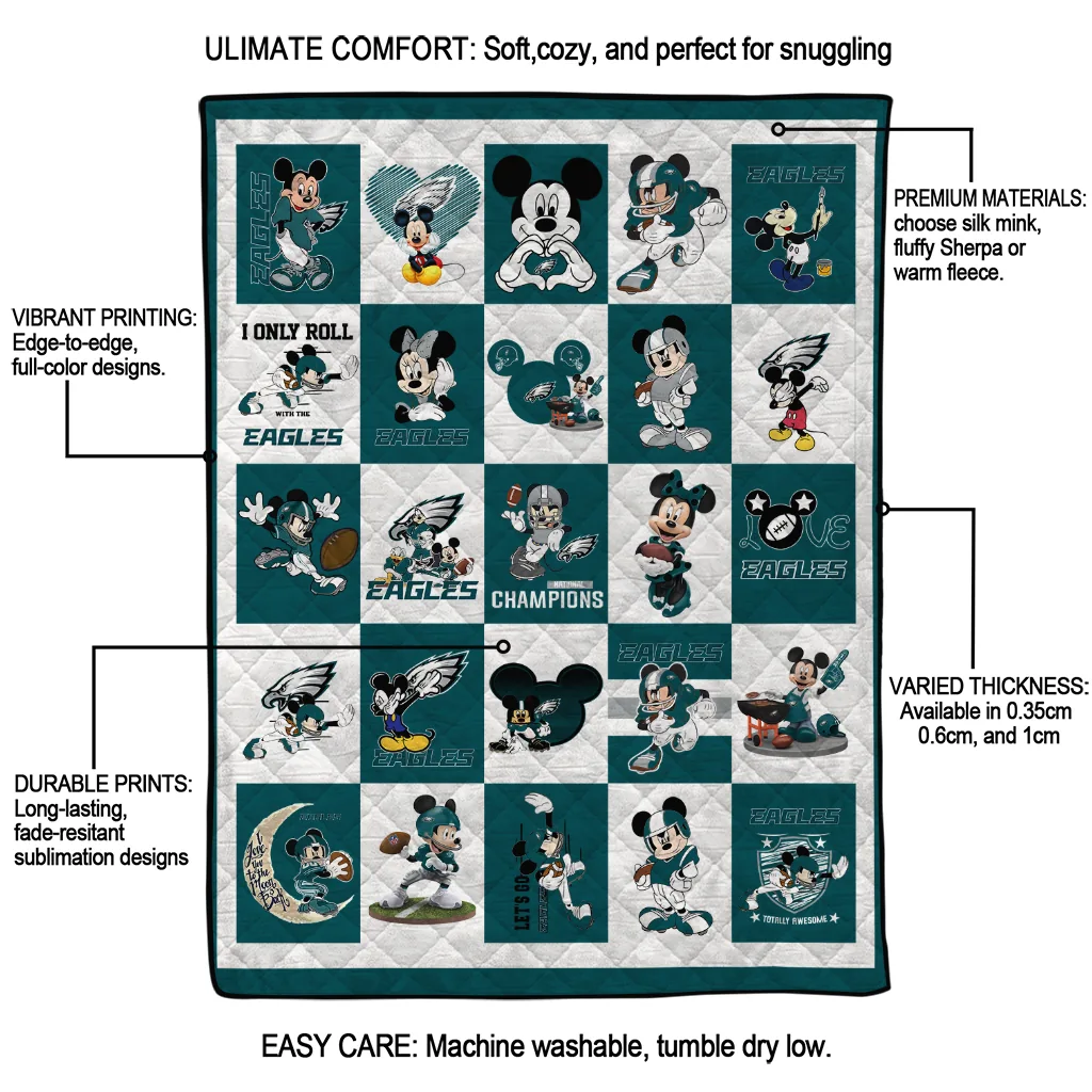 The Philadelphia Eagles Mickey Pattern Green White Quilt Blanket is more than a blanket—it’s everyday comfort, thoughtfully made. Crafted from premium quilting fabric with a soft microfiber touch, it offers a smooth hand-feel and lasting coziness. Layered quilting with a cotton-filled core provides adaptable warmth across seasons while maintaining a clean, tailored look on your bed or sofa.