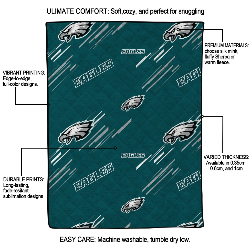 The Philadelphia Eagles Sketch Lines Green Quilt Blanket is more than a blanket—it’s everyday comfort, thoughtfully made. Crafted from premium quilting fabric with a soft microfiber touch, it offers a smooth hand-feel and lasting coziness. Layered quilting with a cotton-filled core provides adaptable warmth across seasons while maintaining a clean, tailored look on your bed or sofa.