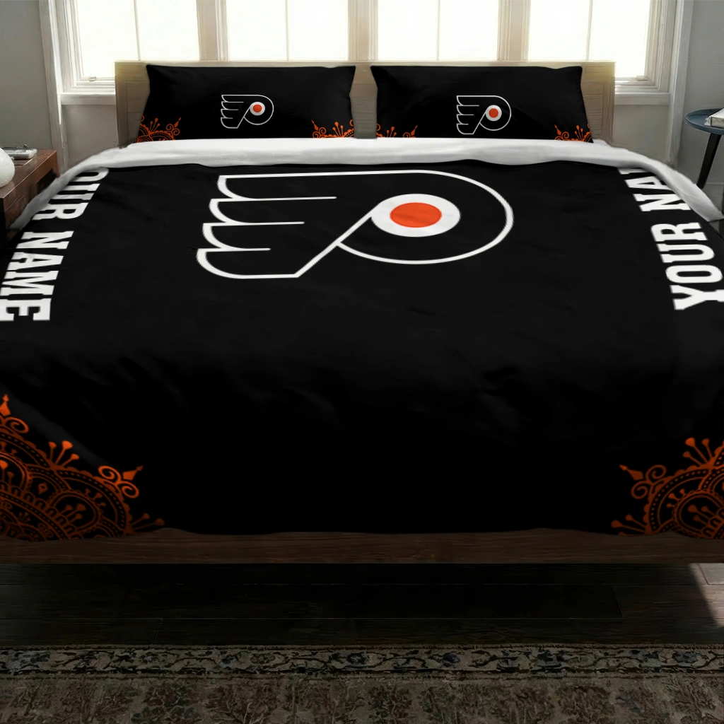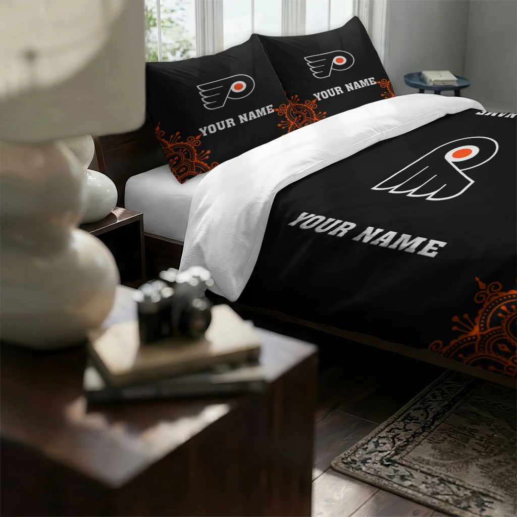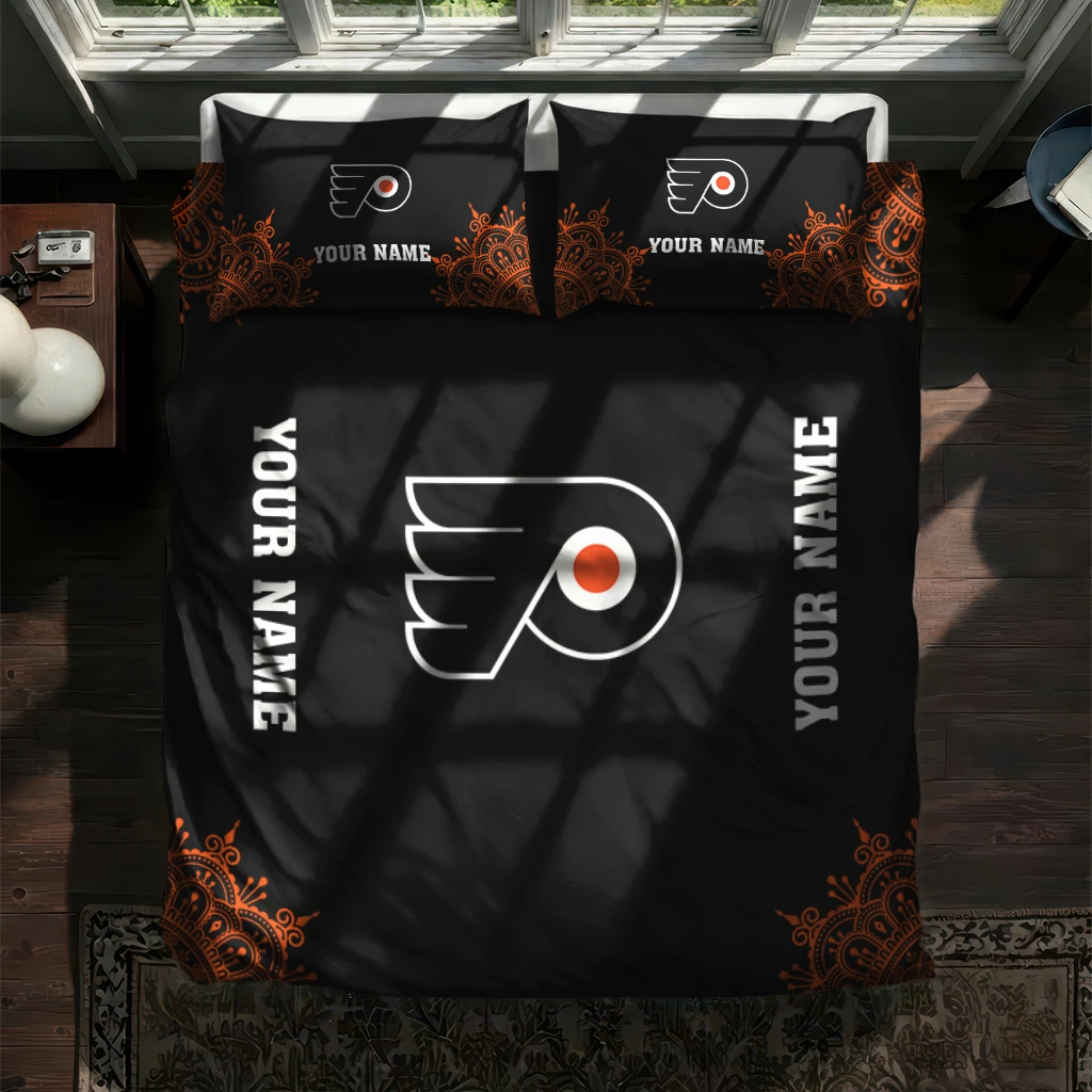 Philadelphia Flyers Bedding Set – Customized Mandala Lacework Black Orange