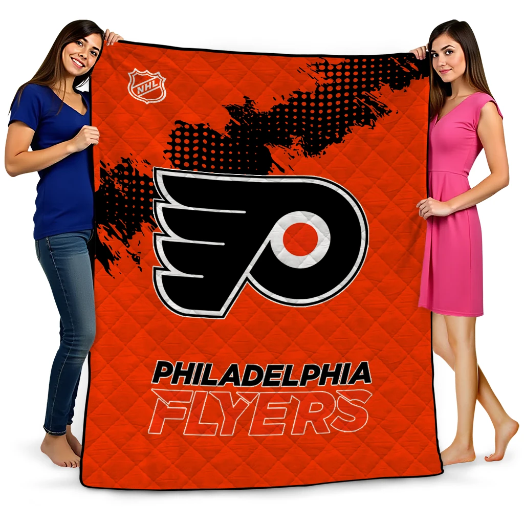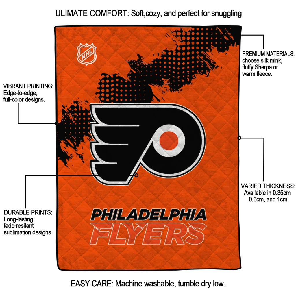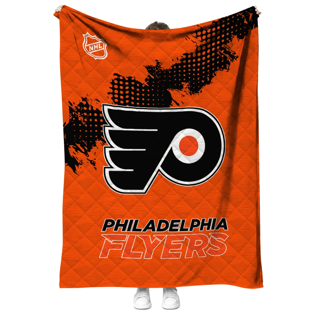 Wrap yourself in warmth and pride with the Philadelphia Flyers NHL Shield Orange Quilt Blanket from the Philadelphia Flyers Blankets collection at Yes That Blanket. Made from 100% premium quilting-weight polyester blended with a touch of microfiber, this quilt offers a smooth, soft finish you’ll love. Choose between two quilting styles—Stipple or Diagonal—and enjoy the comfort of a cotton-filled layer inside that adds extra coziness for every season. The border is available in classic black or white, giving your design a clean, timeless edge.