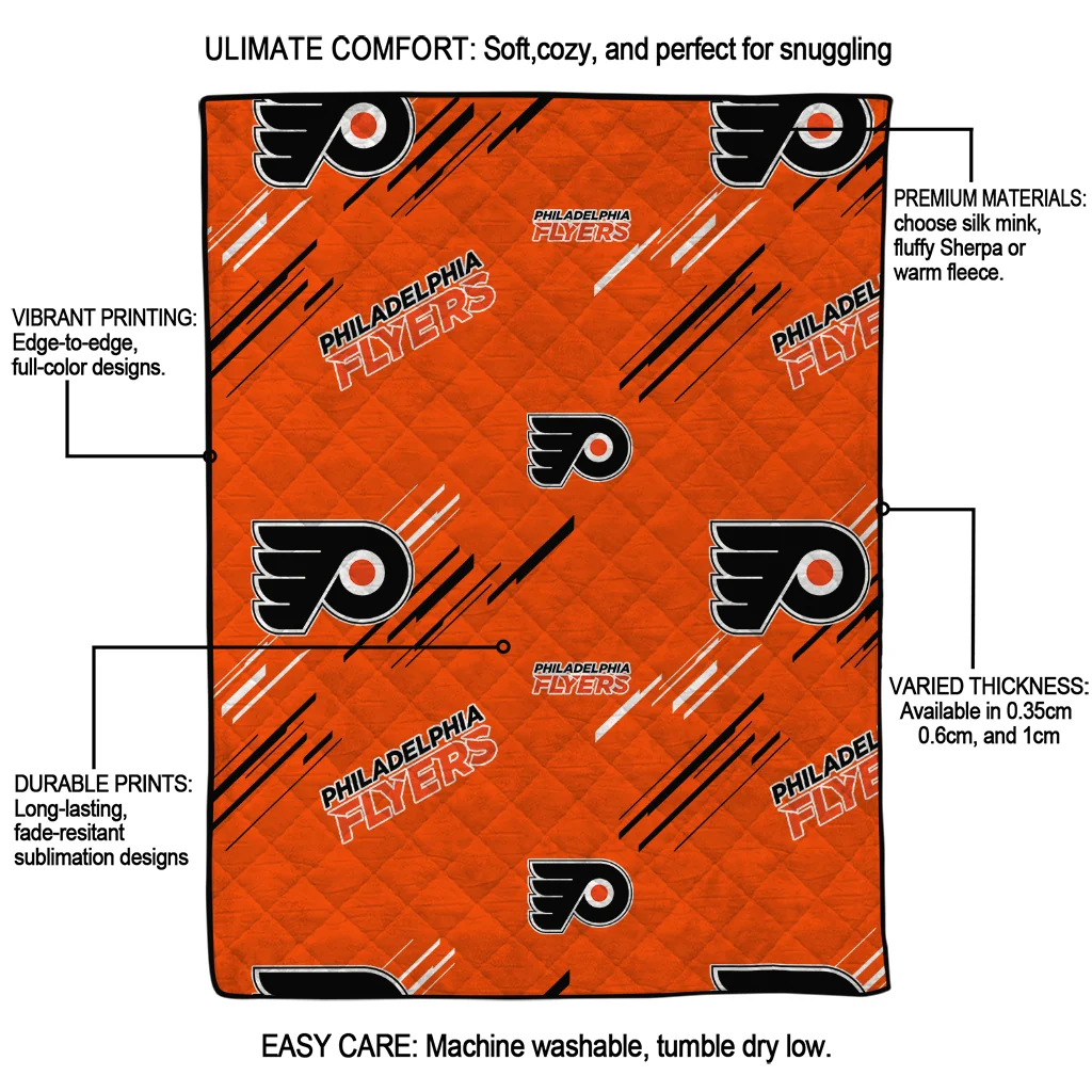 Wrap yourself in warmth and pride with the Philadelphia Flyers Sketch Lines Orange Quilt Blanket from the Philadelphia Flyers Blankets collection at Yes That Blanket. Made from 100% premium quilting-weight polyester blended with a touch of microfiber, this quilt offers a smooth, soft finish you’ll love. Choose between two quilting styles—Stipple or Diagonal—and enjoy the comfort of a cotton-filled layer inside that adds extra coziness for every season. The border is available in classic black or white, giving your design a clean, timeless edge.