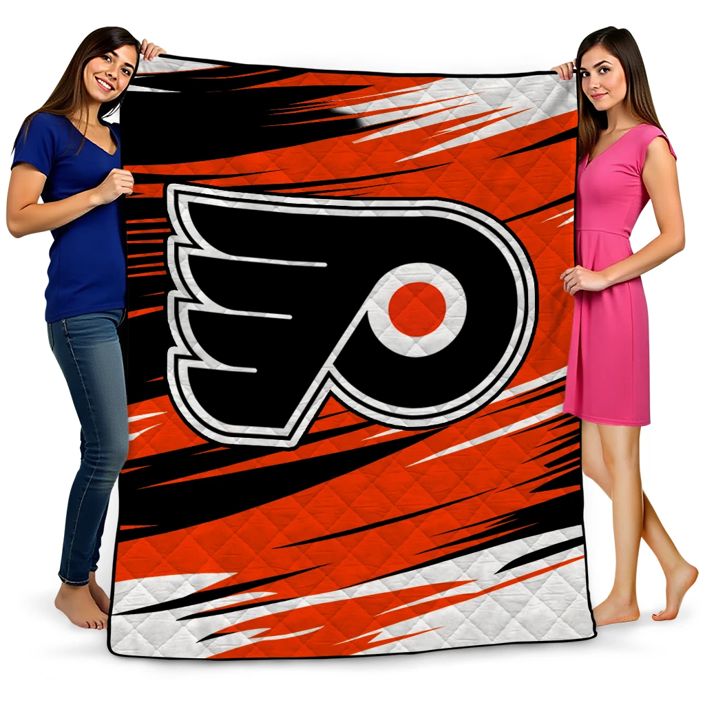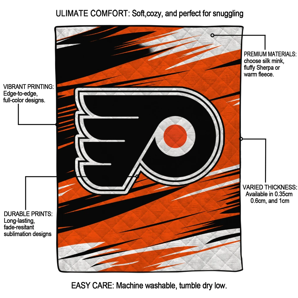 Wrap yourself in warmth and pride with the Philadelphia Flyers Wild Lines Orange White Quilt Blanket from the Philadelphia Flyers Blankets collection at Yes That Blanket. Made from 100% premium quilting-weight polyester blended with a touch of microfiber, this quilt offers a smooth, soft finish you’ll love. Choose between two quilting styles—Stipple or Diagonal—and enjoy the comfort of a cotton-filled layer inside that adds extra coziness for every season. The border is available in classic black or white, giving your design a clean, timeless edge.