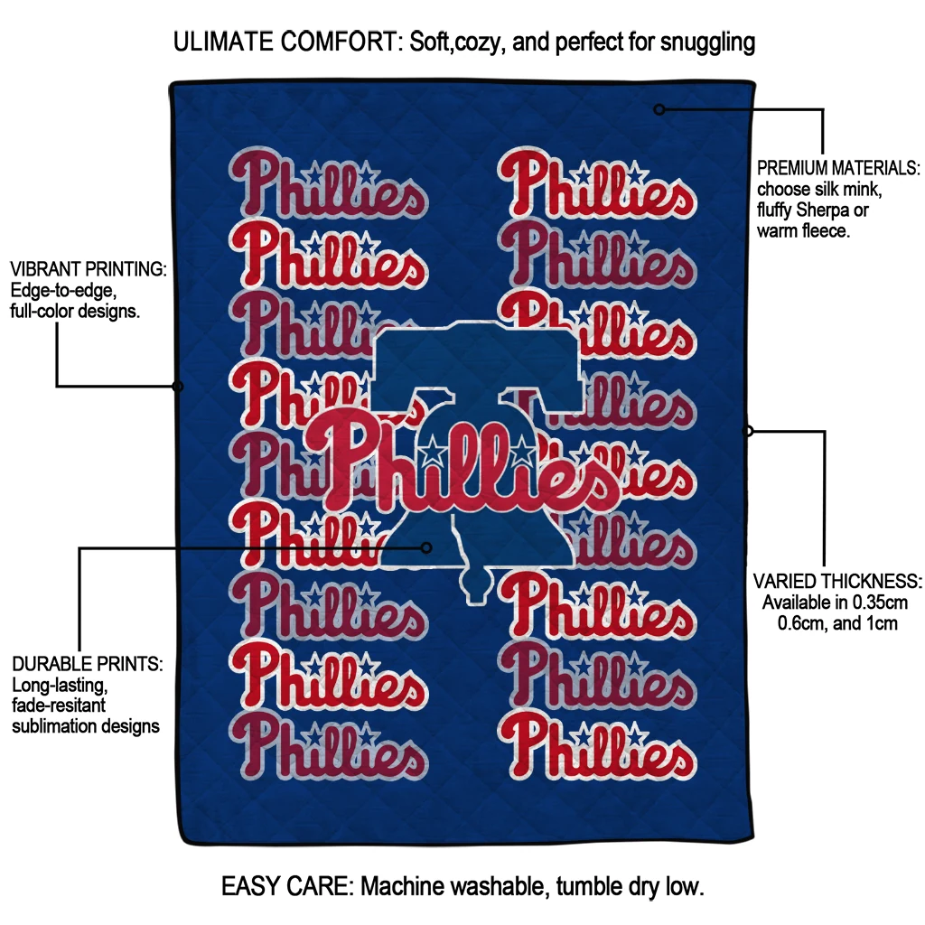 Wrap yourself in warmth and pride with the Philadelphia Phillies Bold Red Blue Quilt Blanket from the Philadelphia Phillies Blankets collection at Yes That Blanket. Made from 100% premium quilting-weight polyester blended with a touch of microfiber, this quilt offers a smooth, soft finish you’ll love. Choose between two quilting styles—Stipple or Diagonal—and enjoy the comfort of a cotton-filled layer inside that adds extra coziness for every season. The border is available in classic black or white, giving your design a clean, timeless edge.