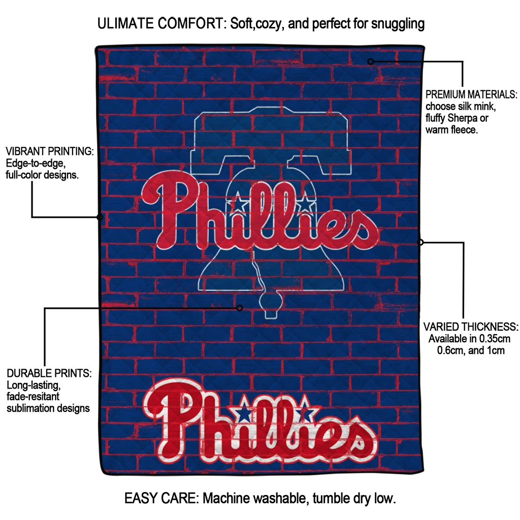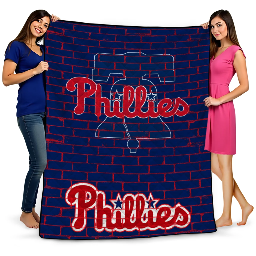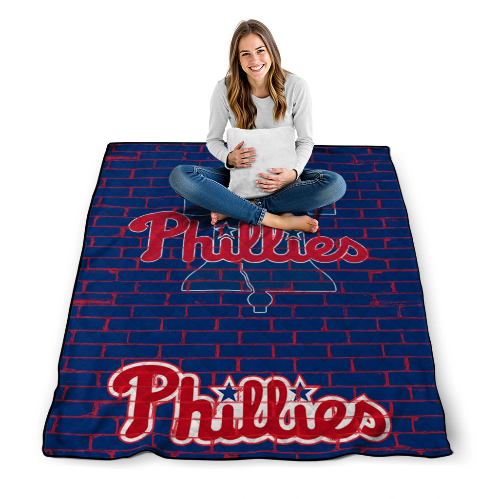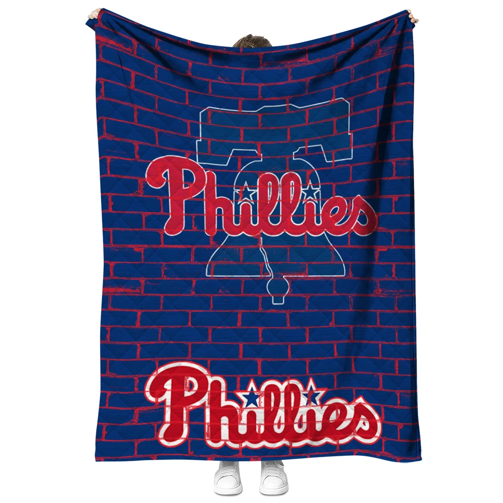 Philadelphia Phillies Brick Grid Blue Quilt Blanket