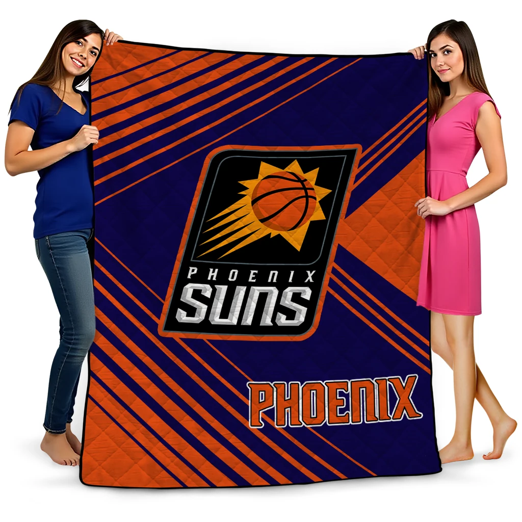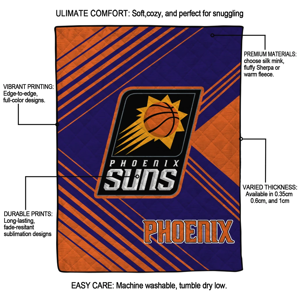 Wrap yourself in warmth and pride with the Phoenix Suns Arrow Layers Purple Quilt Blanket from the Phoenix Suns Blankets collection at Yes That Blanket. Made from 100% premium quilting-weight polyester blended with a touch of microfiber, this quilt offers a smooth, soft finish you’ll love. Choose between two quilting styles—Stipple or Diagonal—and enjoy the comfort of a cotton-filled layer inside that adds extra coziness for every season. The border is available in classic black or white, giving your design a clean, timeless edge.