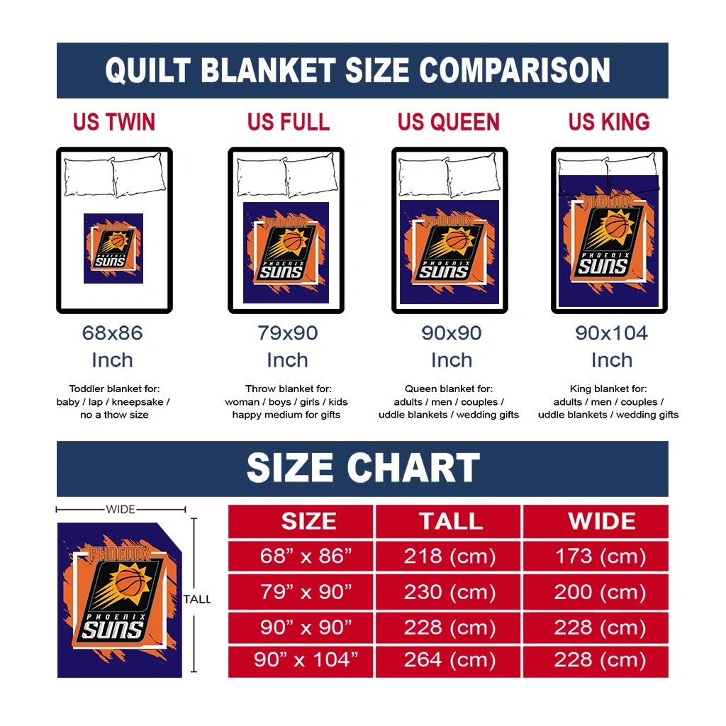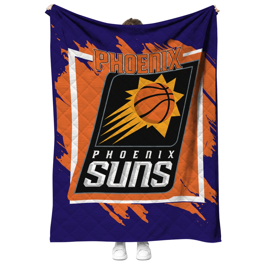 Wrap yourself in warmth and pride with the Phoenix Suns Block Border Purple Quilt Blanket from the Phoenix Suns Blankets collection at Yes That Blanket. Made from 100% premium quilting-weight polyester blended with a touch of microfiber, this quilt offers a smooth, soft finish you’ll love. Choose between two quilting styles—Stipple or Diagonal—and enjoy the comfort of a cotton-filled layer inside that adds extra coziness for every season. The border is available in classic black or white, giving your design a clean, timeless edge.