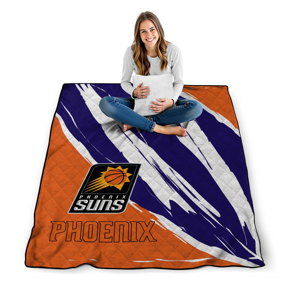 Wrap yourself in warmth and pride with the Phoenix Suns Stroke Art Purple White Quilt Blanket from the Phoenix Suns Blankets collection at Yes That Blanket. Made from 100% premium quilting-weight polyester blended with a touch of microfiber, this quilt offers a smooth, soft finish you’ll love. Choose between two quilting styles—Stipple or Diagonal—and enjoy the comfort of a cotton-filled layer inside that adds extra coziness for every season. The border is available in classic black or white, giving your design a clean, timeless edge.