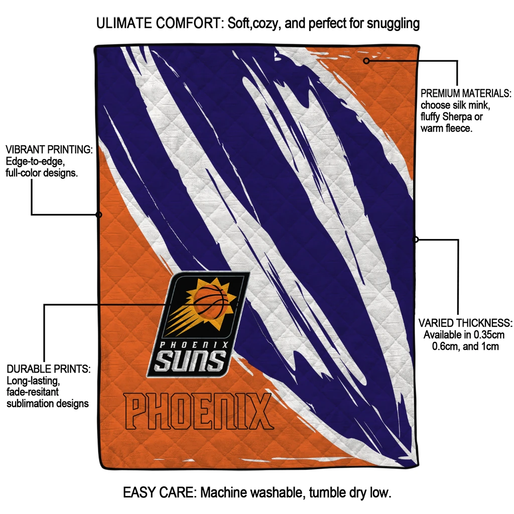 The Phoenix Suns Stroke Art Purple White Quilt Blanket is more than a blanket—it’s everyday comfort, thoughtfully made. Crafted from premium quilting fabric with a soft microfiber touch, it offers a smooth hand-feel and lasting coziness. Layered quilting with a cotton-filled core provides adaptable warmth across seasons while maintaining a clean, tailored look on your bed or sofa.