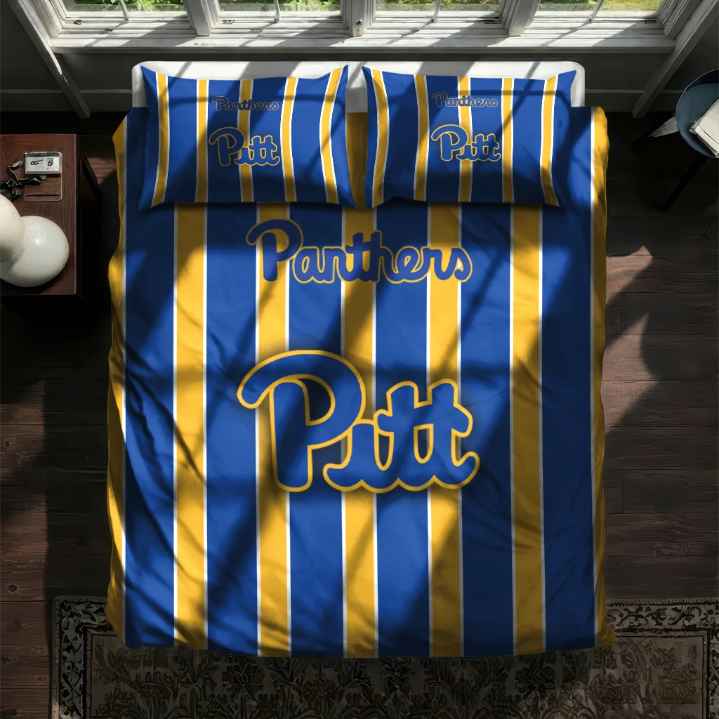 Pittsburgh Panthers Bedding Set – Stripe Style Blue Yellow