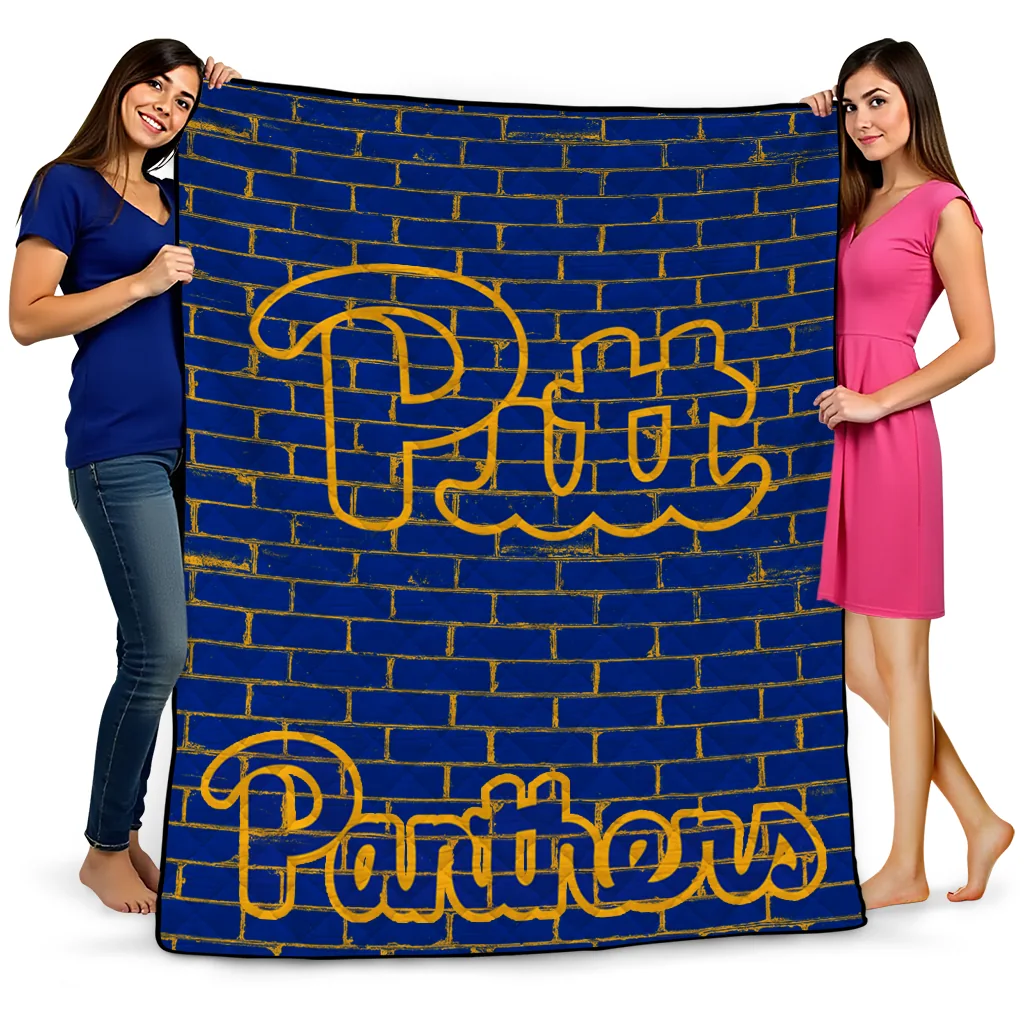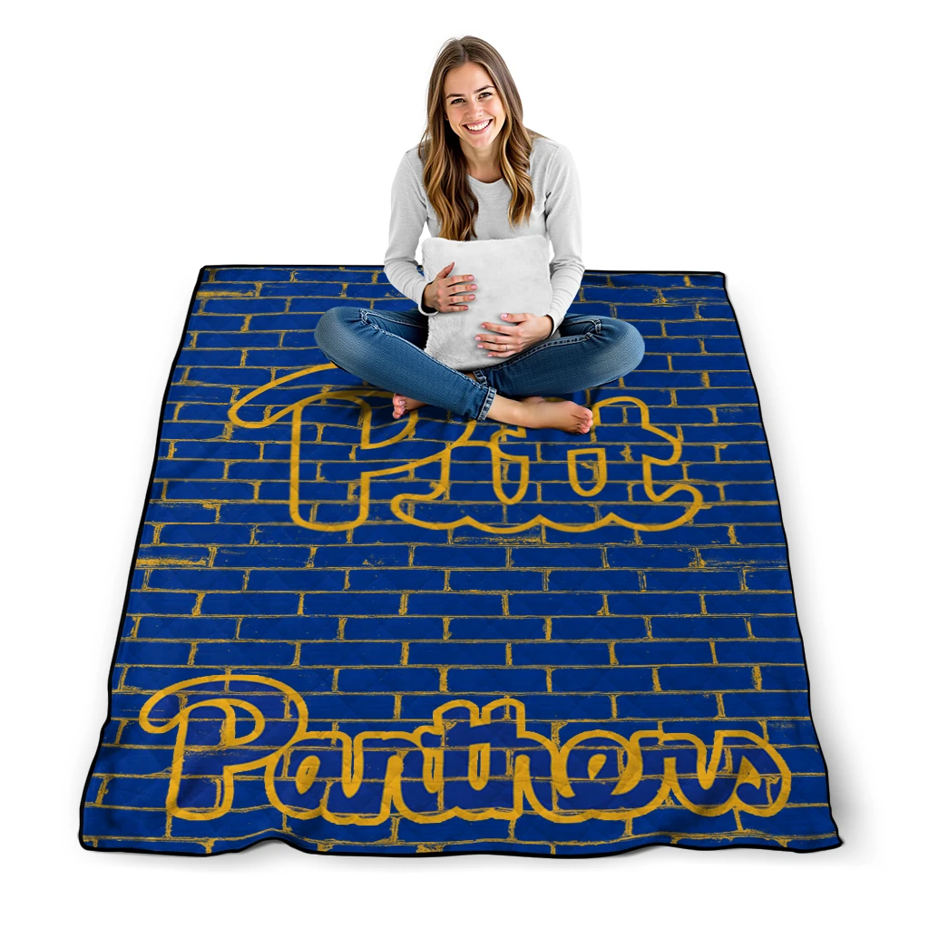 Pittsburgh Panthers Brick Grid Royal Blue Quilt Blanket