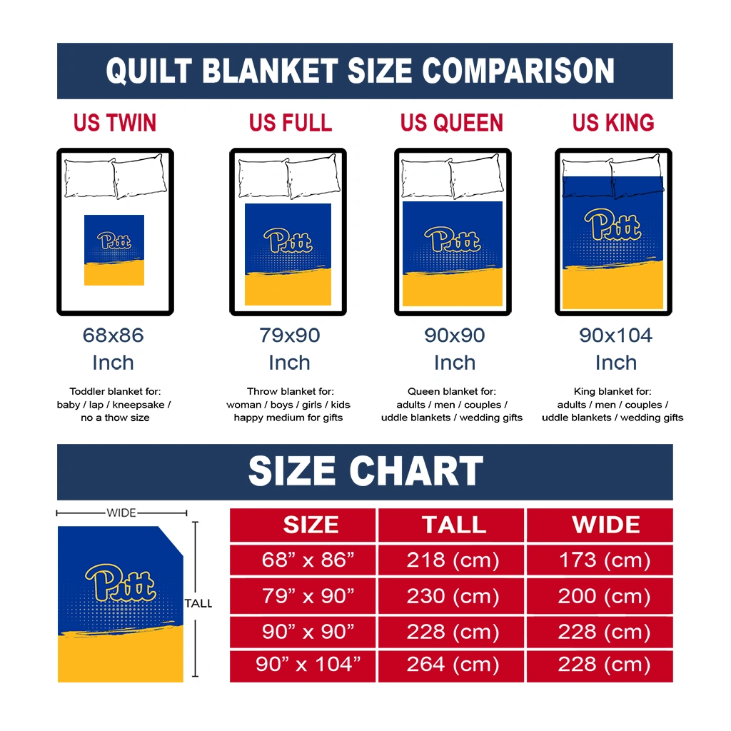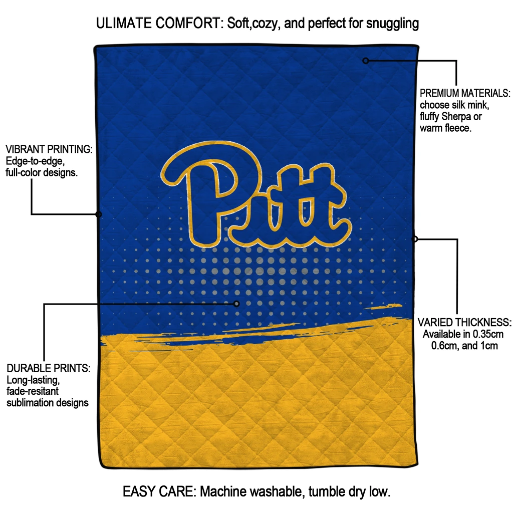 Wrap yourself in warmth and pride with the Pittsburgh Panthers Dot Illusion Royal Blue Quilt Blanket from the Pittsburgh Panthers Blankets collection at Yes That Blanket. Made from 100% premium quilting-weight polyester blended with a touch of microfiber, this quilt offers a smooth, soft finish you’ll love. Choose between two quilting styles—Stipple or Diagonal—and enjoy the comfort of a cotton-filled layer inside that adds extra coziness for every season. The border is available in classic black or white, giving your design a clean, timeless edge.