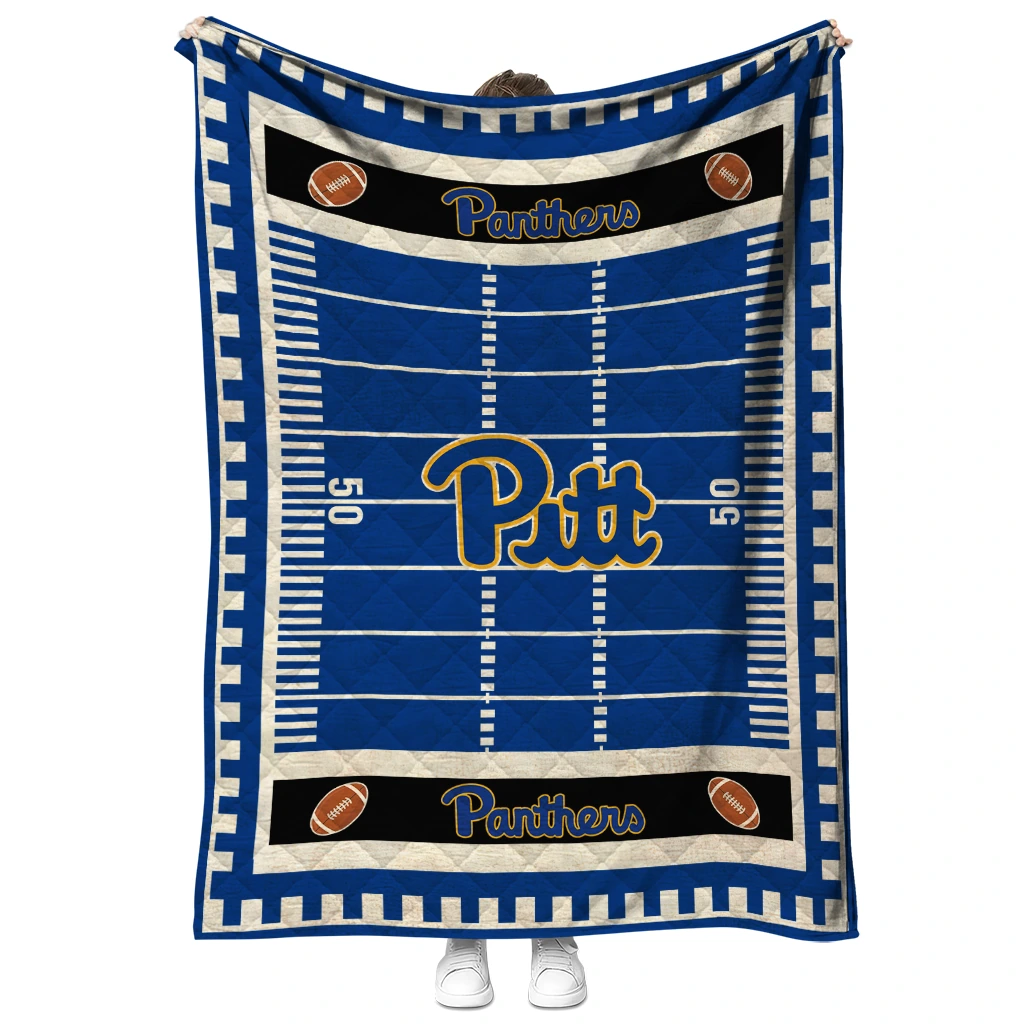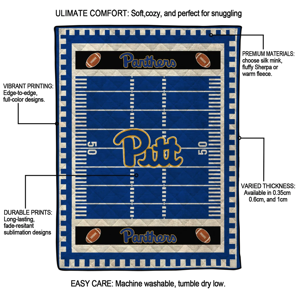 Wrap yourself in warmth and pride with the Pittsburgh Panthers Mickey Player Royal Blue Quilt Blanket from the Pittsburgh Panthers Blankets collection at Yes That Blanket. Made from 100% premium quilting-weight polyester blended with a touch of microfiber, this quilt offers a smooth, soft finish you’ll love. Choose between two quilting styles—Stipple or Diagonal—and enjoy the comfort of a cotton-filled layer inside that adds extra coziness for every season. The border is available in classic black or white, giving your design a clean, timeless edge.