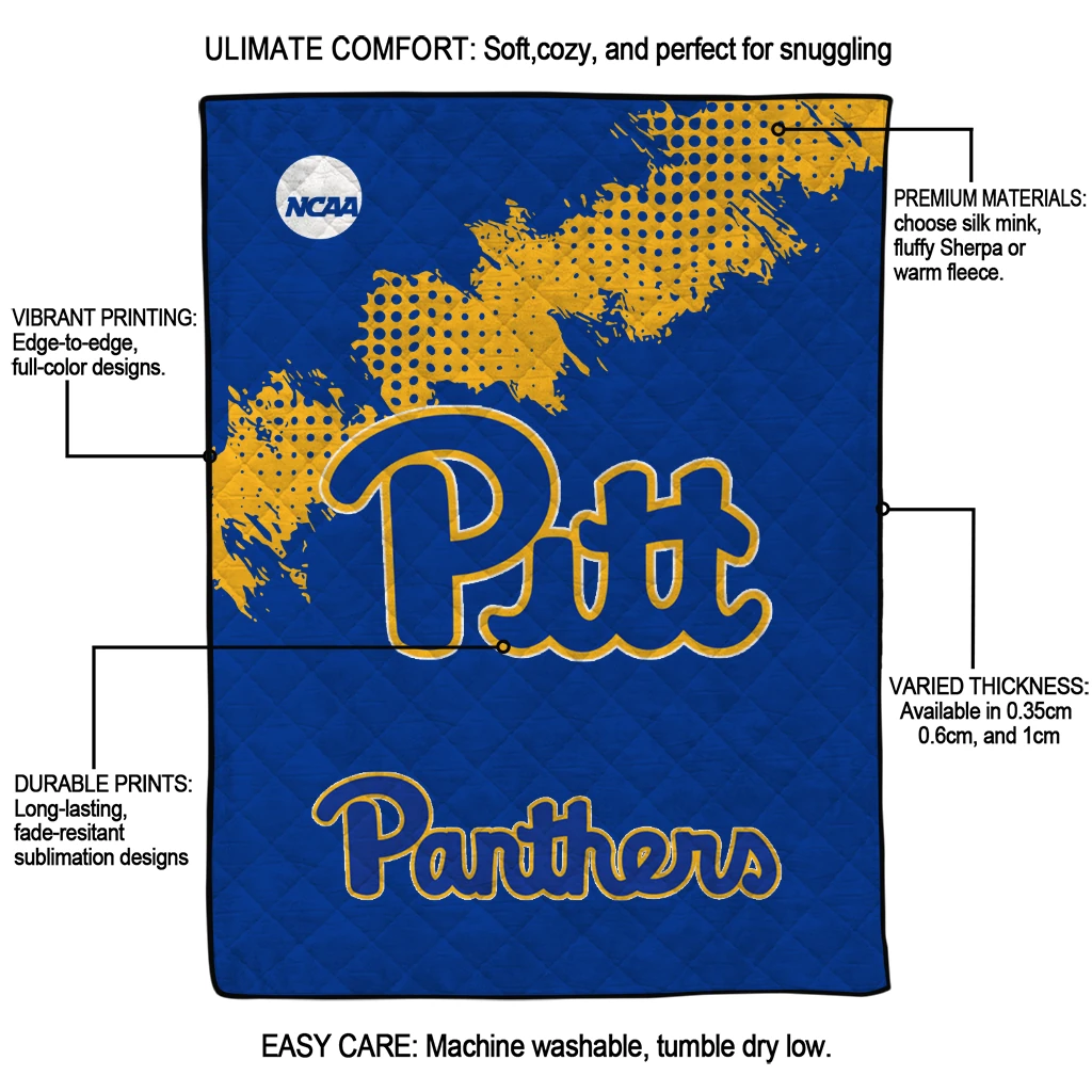 Wrap yourself in warmth and pride with the Pittsburgh Panthers Paint Trail Royal Blue Quilt Blanket from the Pittsburgh Panthers Blankets collection at Yes That Blanket. Made from 100% premium quilting-weight polyester blended with a touch of microfiber, this quilt offers a smooth, soft finish you’ll love. Choose between two quilting styles—Stipple or Diagonal—and enjoy the comfort of a cotton-filled layer inside that adds extra coziness for every season. The border is available in classic black or white, giving your design a clean, timeless edge.