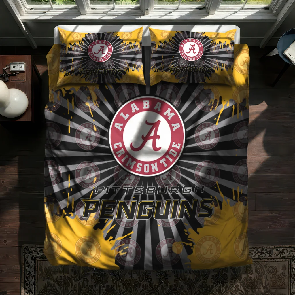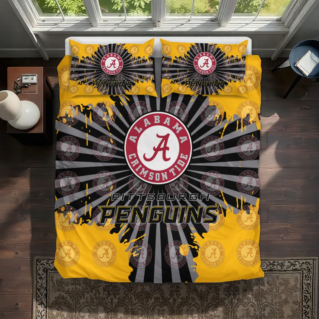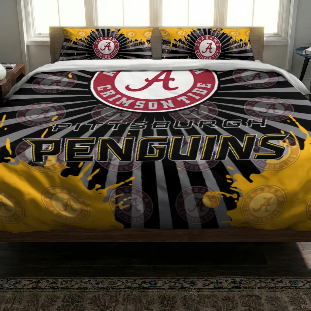 Pittsburgh Penguins Bedding Set – Sunburst Splatter Yellow Black