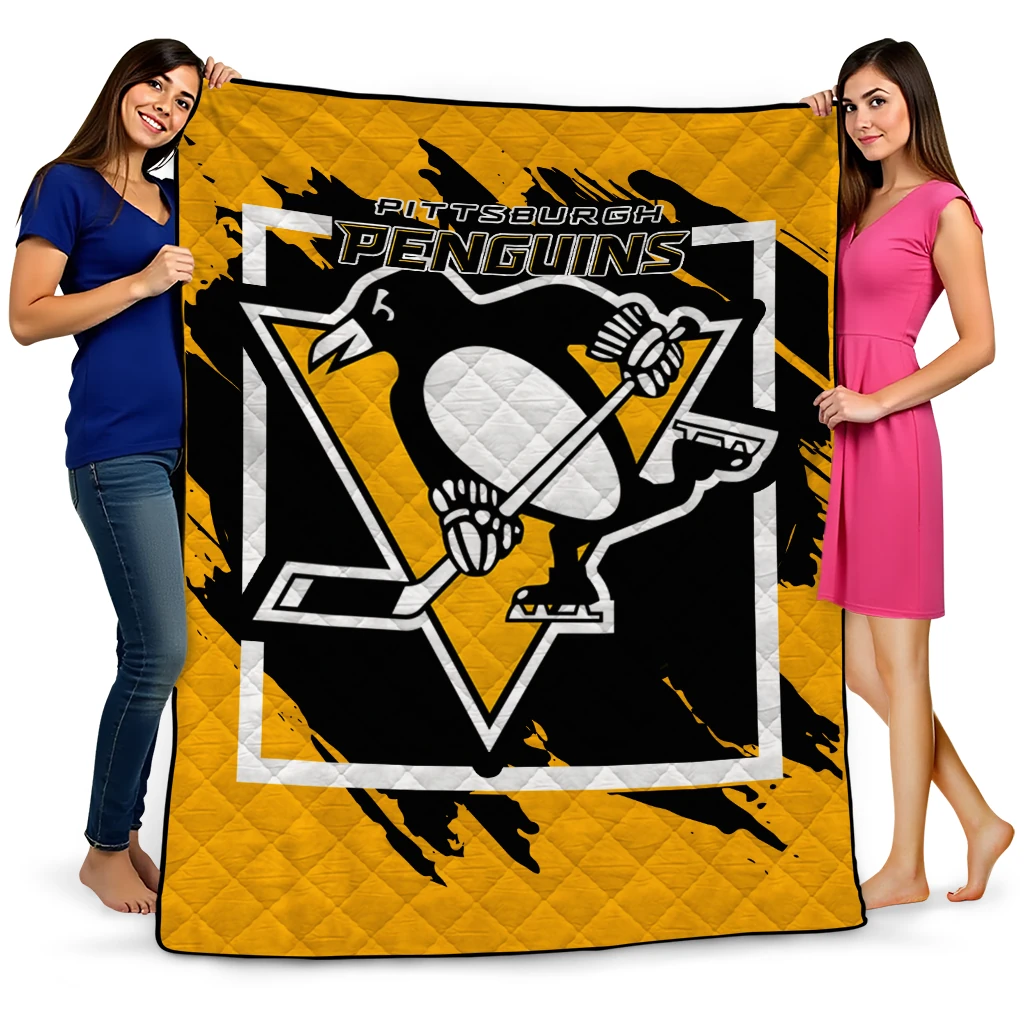 Wrap yourself in warmth and pride with the Pittsburgh Penguins Block Border Yellow Quilt Blanket from the Pittsburgh Penguins Blankets collection at Yes That Blanket. Made from 100% premium quilting-weight polyester blended with a touch of microfiber, this quilt offers a smooth, soft finish you’ll love. Choose between two quilting styles—Stipple or Diagonal—and enjoy the comfort of a cotton-filled layer inside that adds extra coziness for every season. The border is available in classic black or white, giving your design a clean, timeless edge.