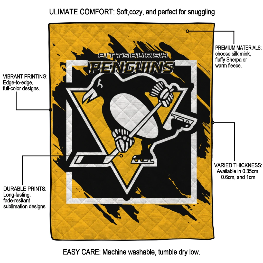 The Pittsburgh Penguins Block Border Yellow Quilt Blanket is more than a blanket—it’s everyday comfort, thoughtfully made. Crafted from premium quilting fabric with a soft microfiber touch, it offers a smooth hand-feel and lasting coziness. Layered quilting with a cotton-filled core provides adaptable warmth across seasons while maintaining a clean, tailored look on your bed or sofa.