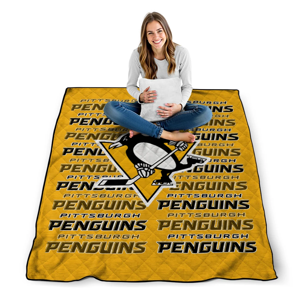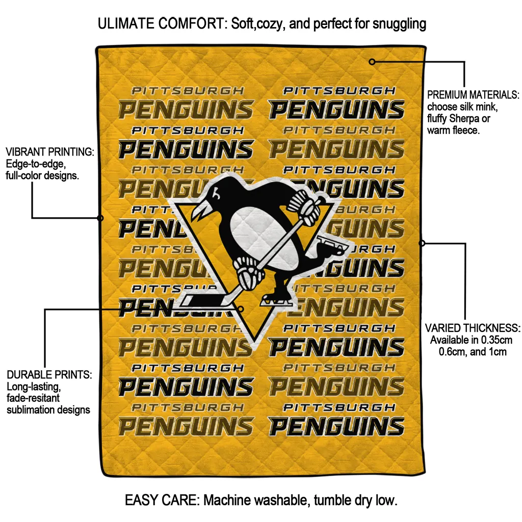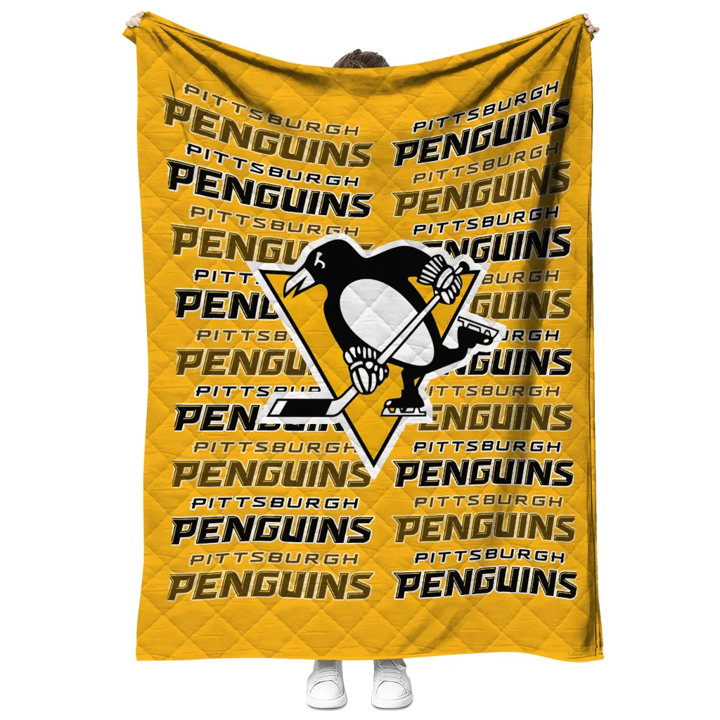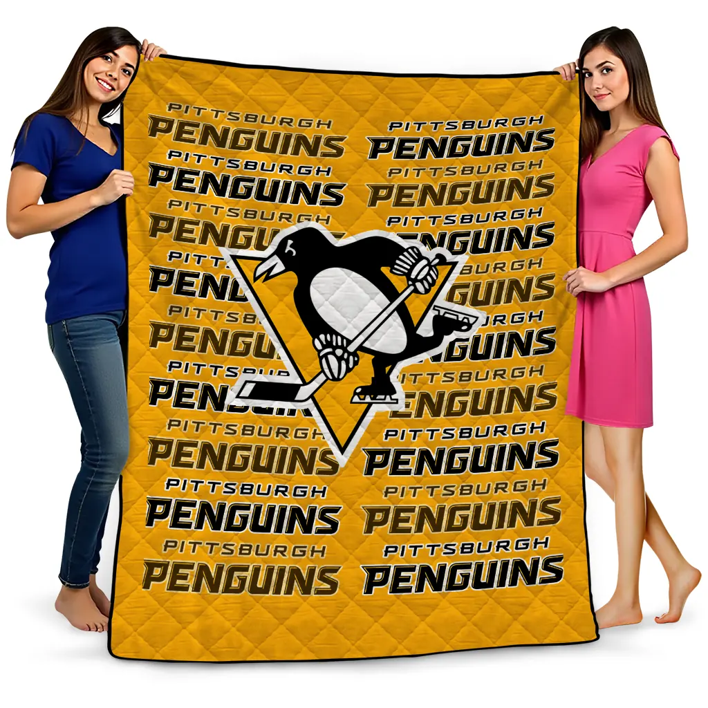 Pittsburgh Penguins Bold Red Yellow Quilt Blanket