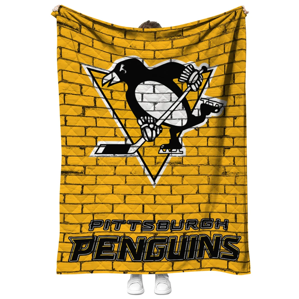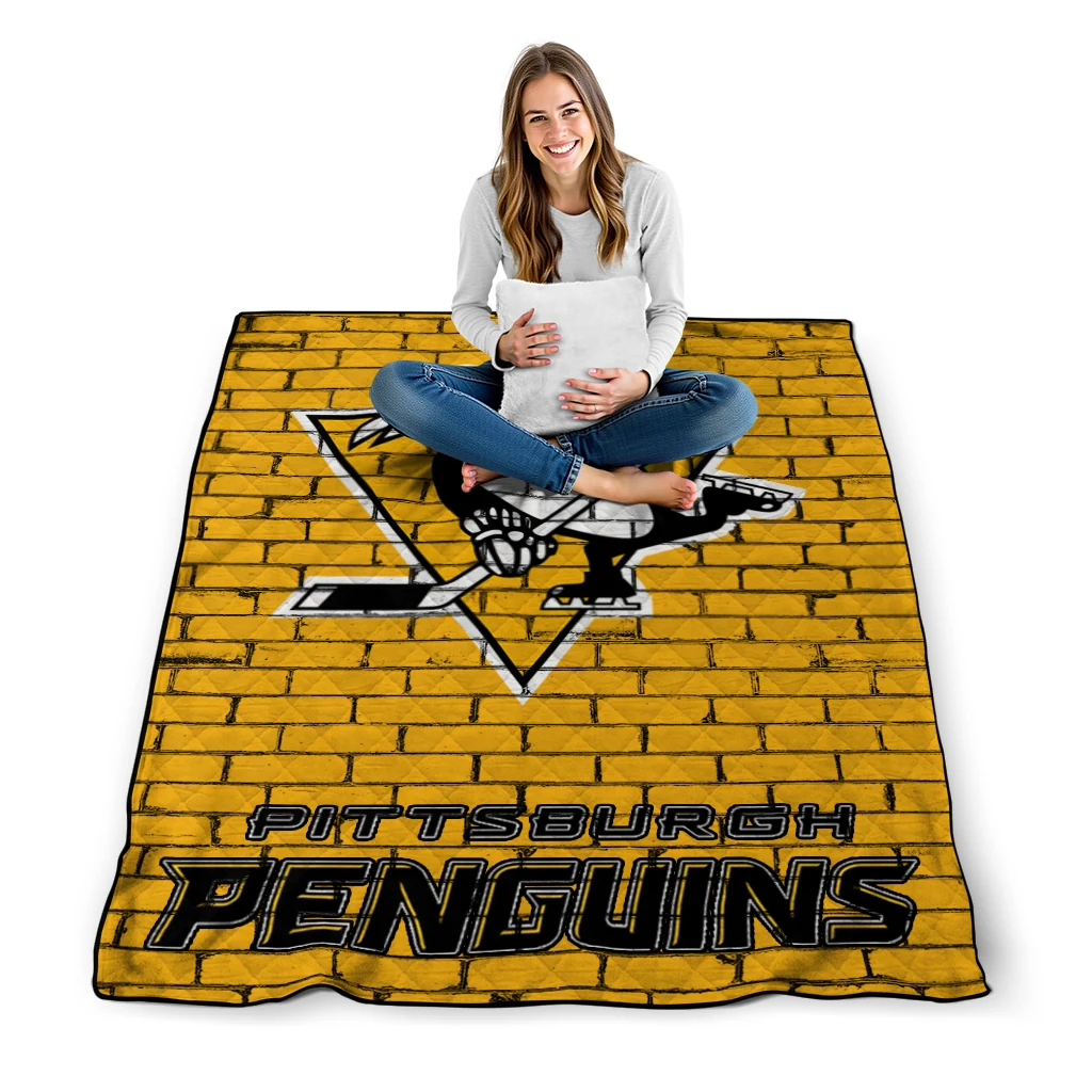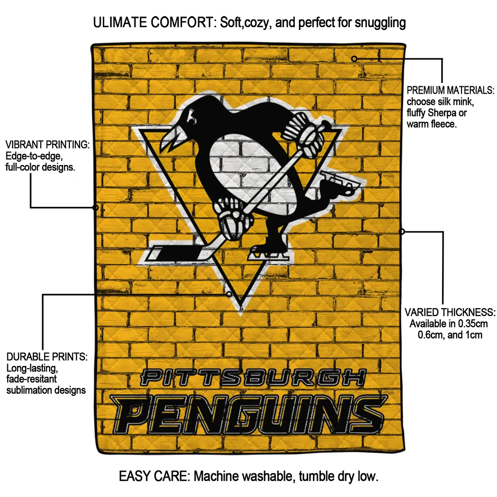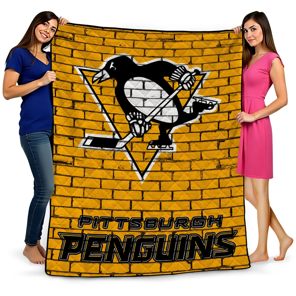 Pittsburgh Penguins Brick Grid Yellow Quilt Blanket