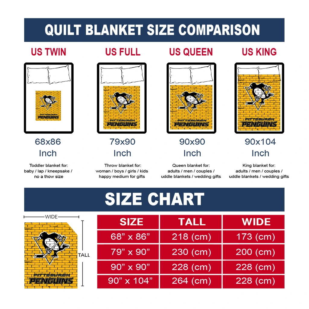 Wrap yourself in warmth and pride with the Pittsburgh Penguins Brick Grid Yellow Quilt Blanket from the Pittsburgh Penguins Blankets collection at Yes That Blanket. Made from 100% premium quilting-weight polyester blended with a touch of microfiber, this quilt offers a smooth, soft finish you’ll love. Choose between two quilting styles—Stipple or Diagonal—and enjoy the comfort of a cotton-filled layer inside that adds extra coziness for every season. The border is available in classic black or white, giving your design a clean, timeless edge.