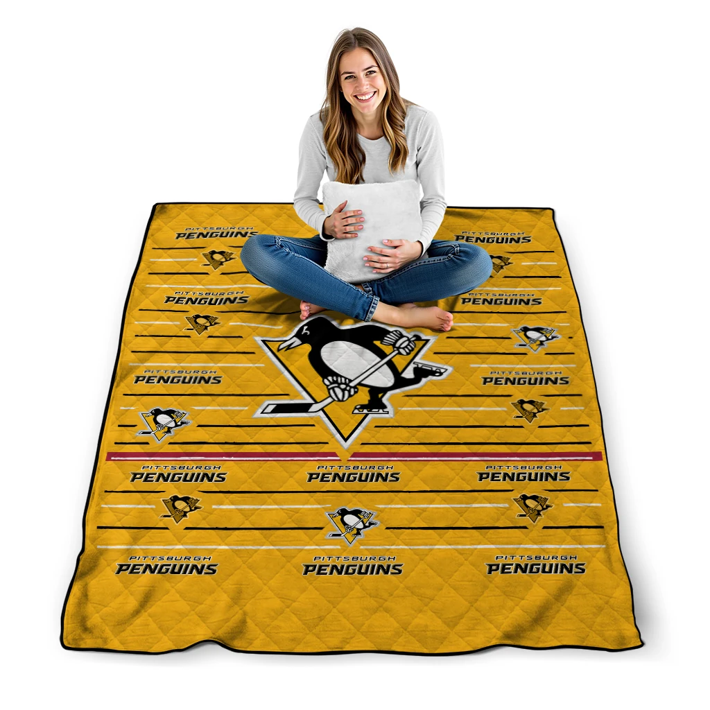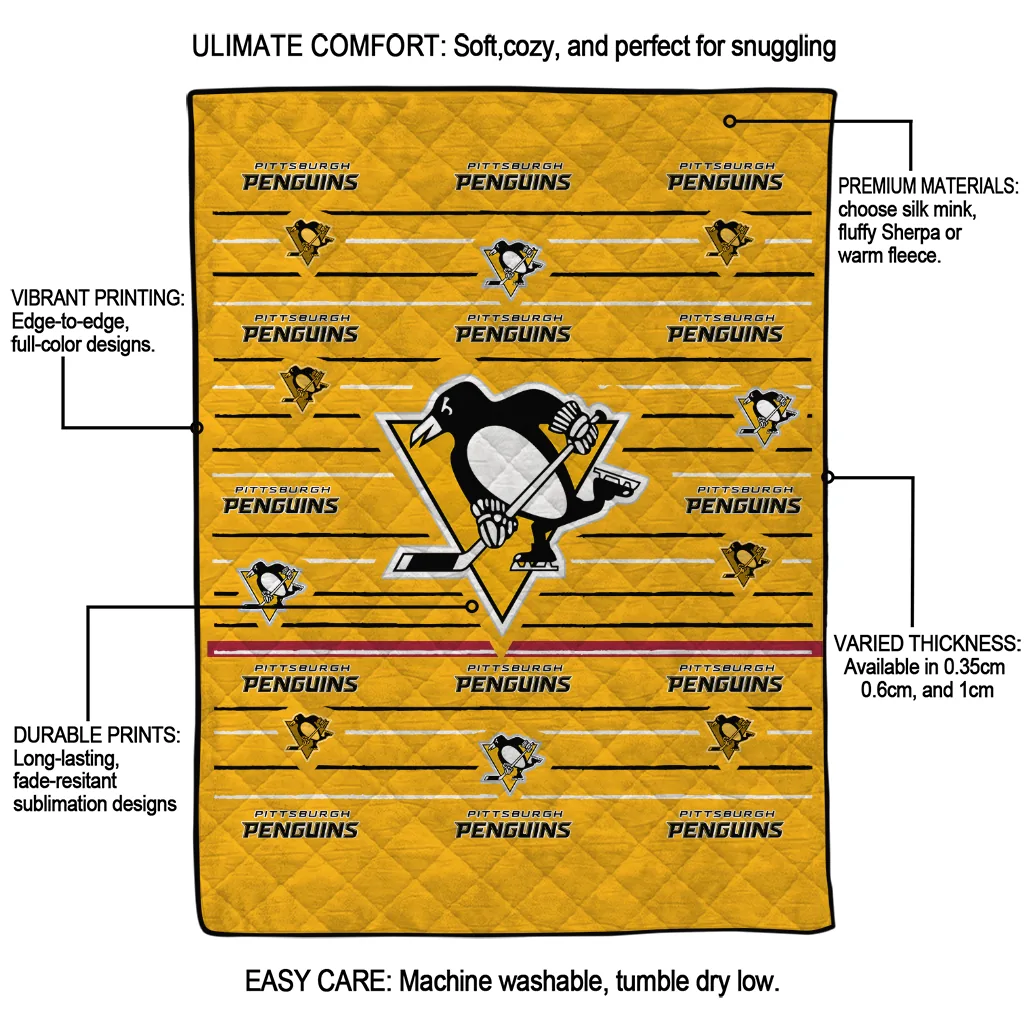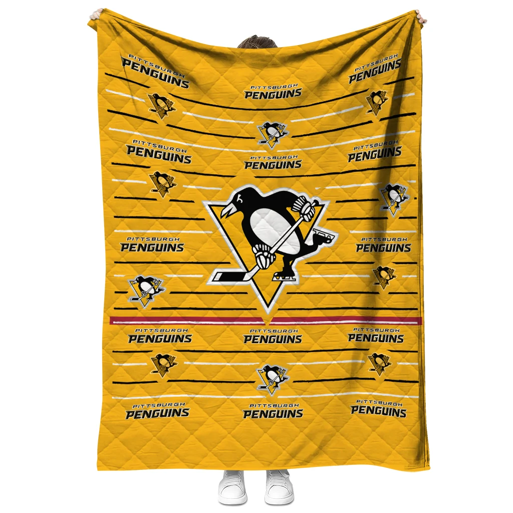 Pittsburgh Penguins Handdrawn Stripes Yellow Quilt Blanket