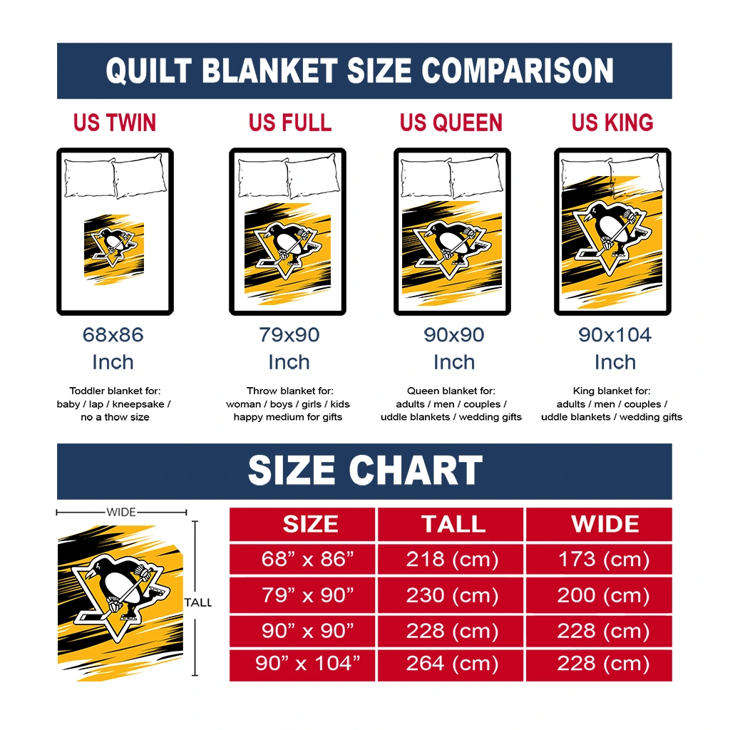 The Pittsburgh Penguins Wild Lines Yellow White Quilt Blanket is more than a blanket—it’s everyday comfort, thoughtfully made. Crafted from premium quilting fabric with a soft microfiber touch, it offers a smooth hand-feel and lasting coziness. Layered quilting with a cotton-filled core provides adaptable warmth across seasons while maintaining a clean, tailored look on your bed or sofa.