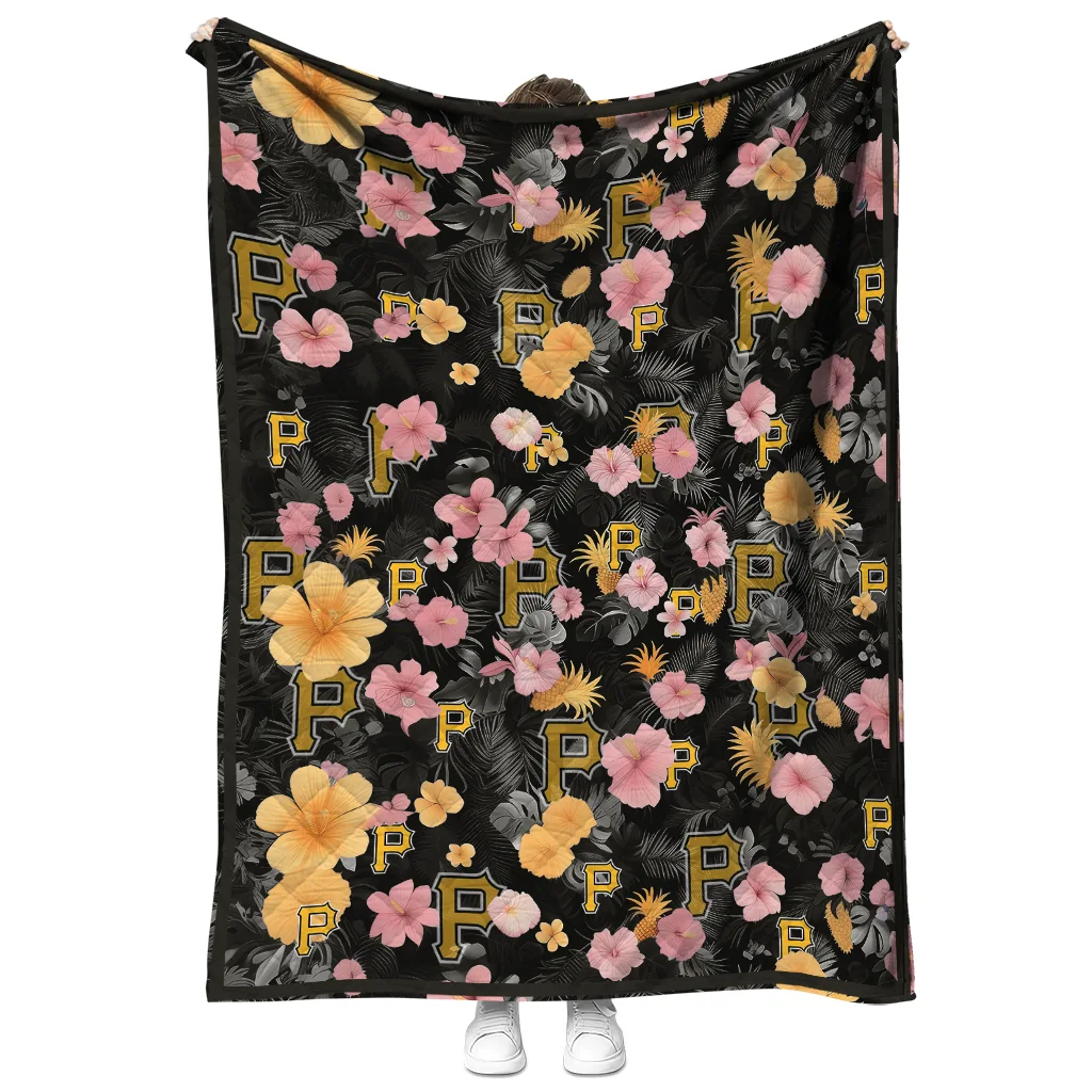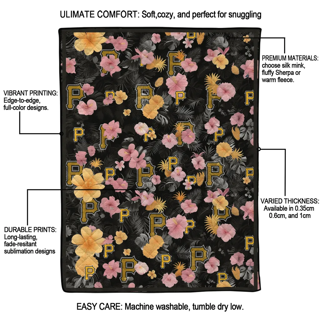 Wrap yourself in warmth and pride with the Pittsburgh Pirates Hibiscus Foliage Black Quilt Blanket from the Pittsburgh Pirates Blankets collection at Yes That Blanket. Made from 100% premium quilting-weight polyester blended with a touch of microfiber, this quilt offers a smooth, soft finish you’ll love. Choose between two quilting styles—Stipple or Diagonal—and enjoy the comfort of a cotton-filled layer inside that adds extra coziness for every season. The border is available in classic black or white, giving your design a clean, timeless edge.