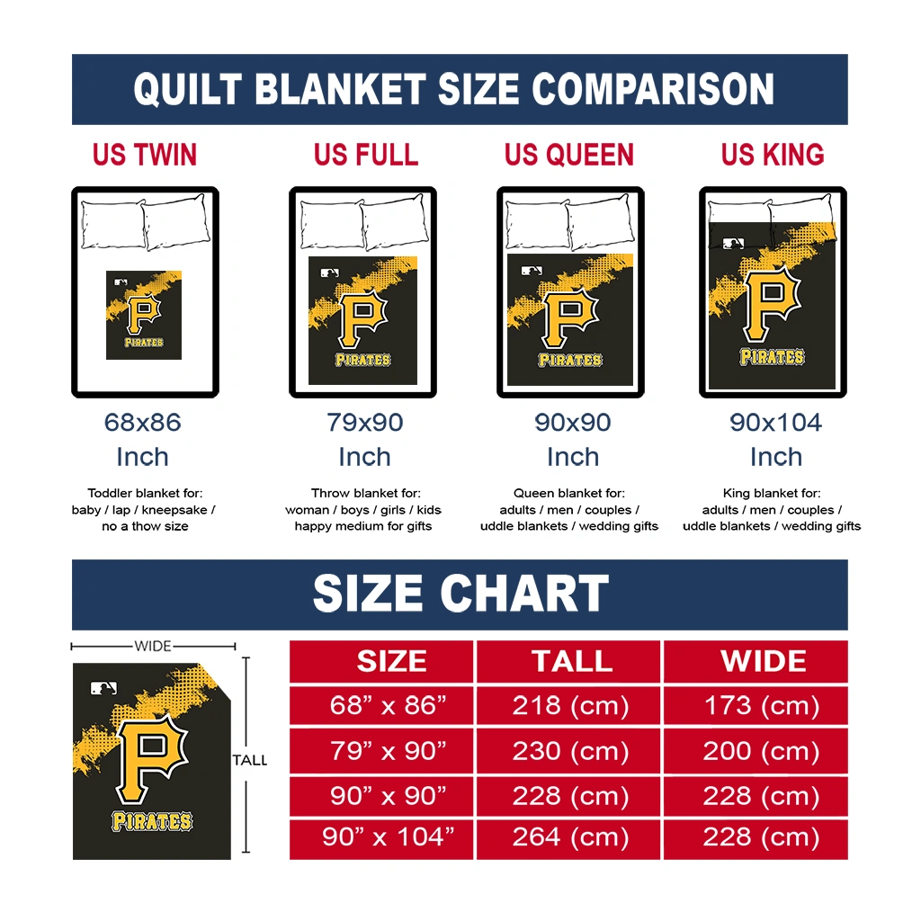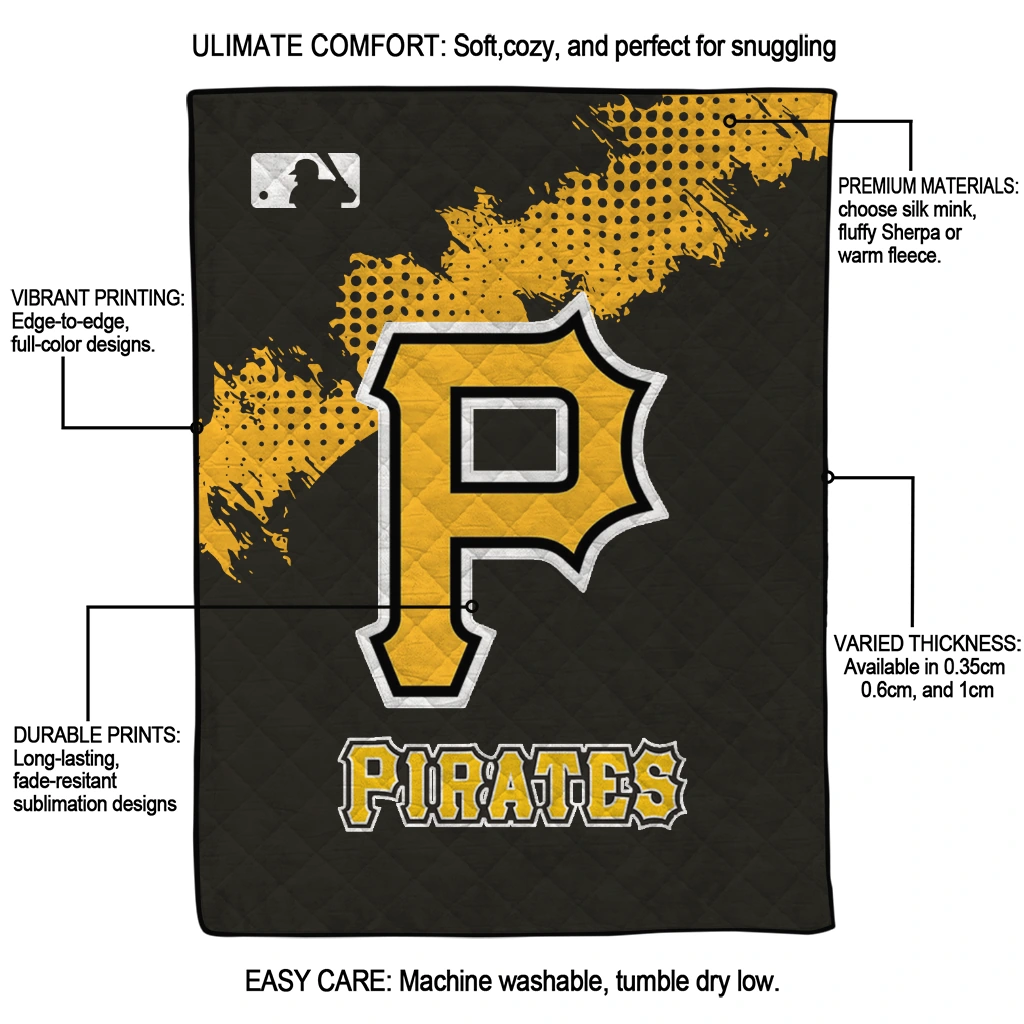 Wrap yourself in warmth and pride with the Pittsburgh Pirates League Patch Black Quilt Blanket from the Pittsburgh Pirates Blankets collection at Yes That Blanket. Made from 100% premium quilting-weight polyester blended with a touch of microfiber, this quilt offers a smooth, soft finish you’ll love. Choose between two quilting styles—Stipple or Diagonal—and enjoy the comfort of a cotton-filled layer inside that adds extra coziness for every season. The border is available in classic black or white, giving your design a clean, timeless edge.
