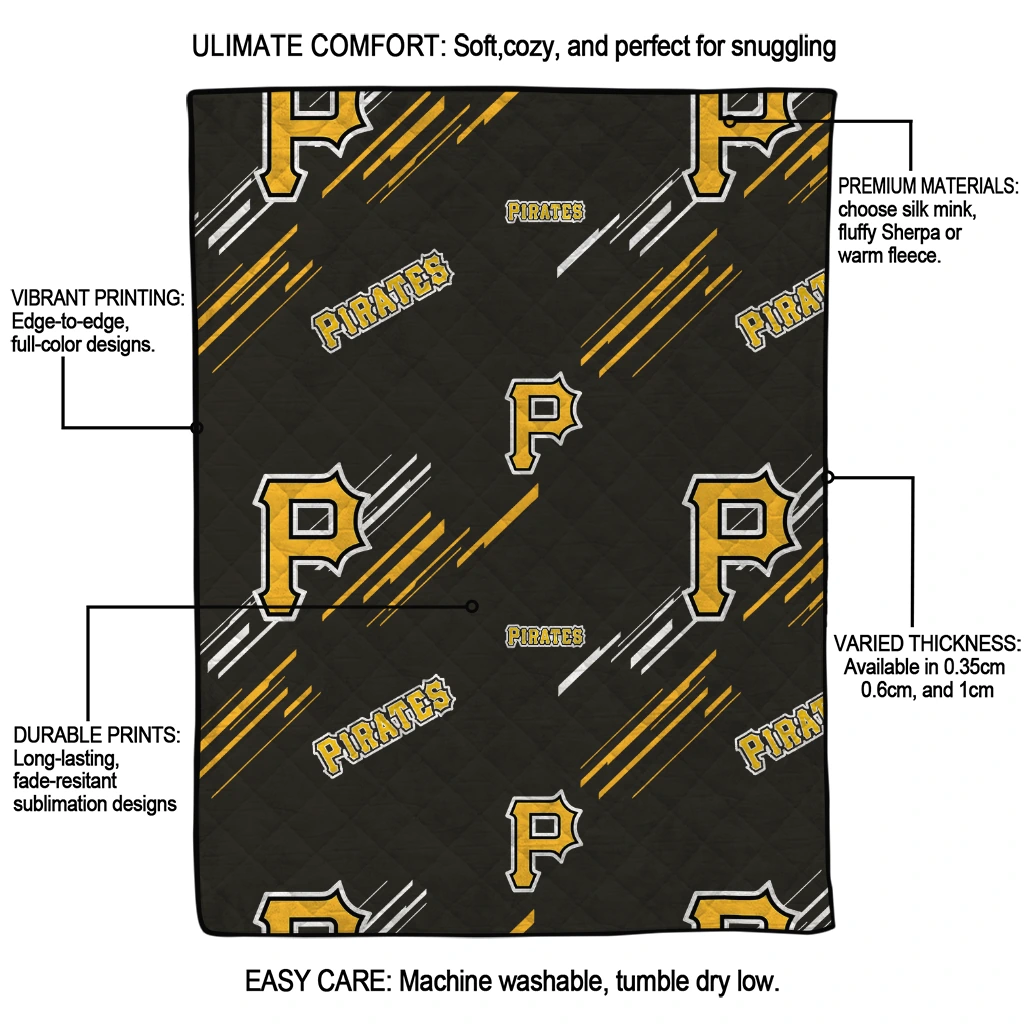 Wrap yourself in warmth and pride with the Pittsburgh Pirates Sketch Lines Black Quilt Blanket from the Pittsburgh Pirates Blankets collection at Yes That Blanket. Made from 100% premium quilting-weight polyester blended with a touch of microfiber, this quilt offers a smooth, soft finish you’ll love. Choose between two quilting styles—Stipple or Diagonal—and enjoy the comfort of a cotton-filled layer inside that adds extra coziness for every season. The border is available in classic black or white, giving your design a clean, timeless edge.