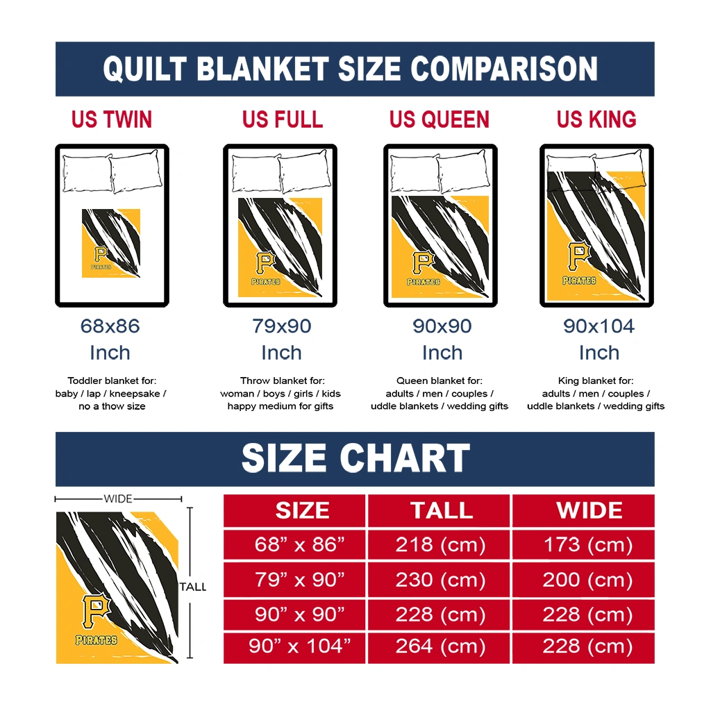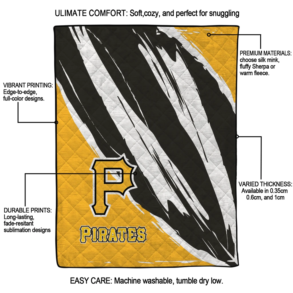 The Pittsburgh Pirates Stroke Art Black White Quilt Blanket is more than a blanket—it’s everyday comfort, thoughtfully made. Crafted from premium quilting fabric with a soft microfiber touch, it offers a smooth hand-feel and lasting coziness. Layered quilting with a cotton-filled core provides adaptable warmth across seasons while maintaining a clean, tailored look on your bed or sofa.