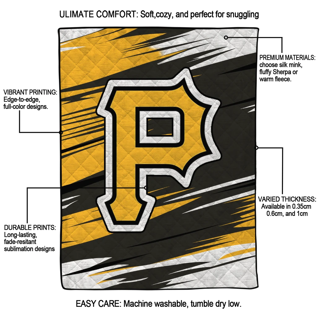 The Pittsburgh Pirates Wild Lines Black White Quilt Blanket is more than a blanket—it’s everyday comfort, thoughtfully made. Crafted from premium quilting fabric with a soft microfiber touch, it offers a smooth hand-feel and lasting coziness. Layered quilting with a cotton-filled core provides adaptable warmth across seasons while maintaining a clean, tailored look on your bed or sofa.