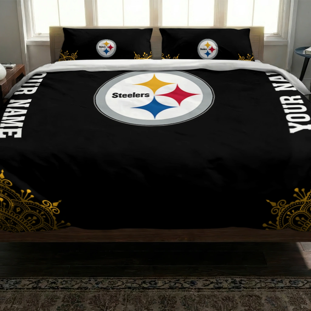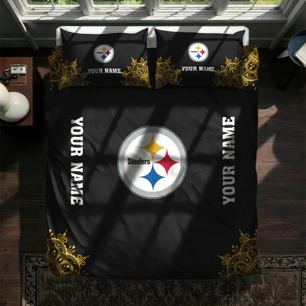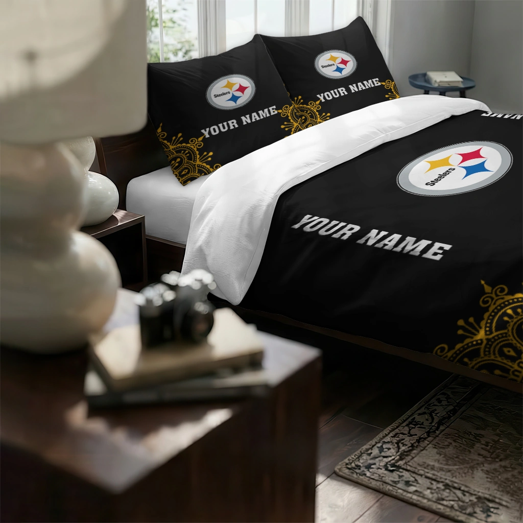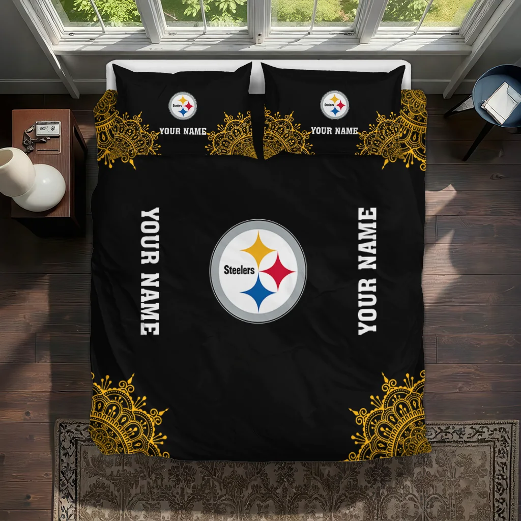 Pittsburgh Steelers Bedding Set – Customized Mandala Lacework Black Yellow