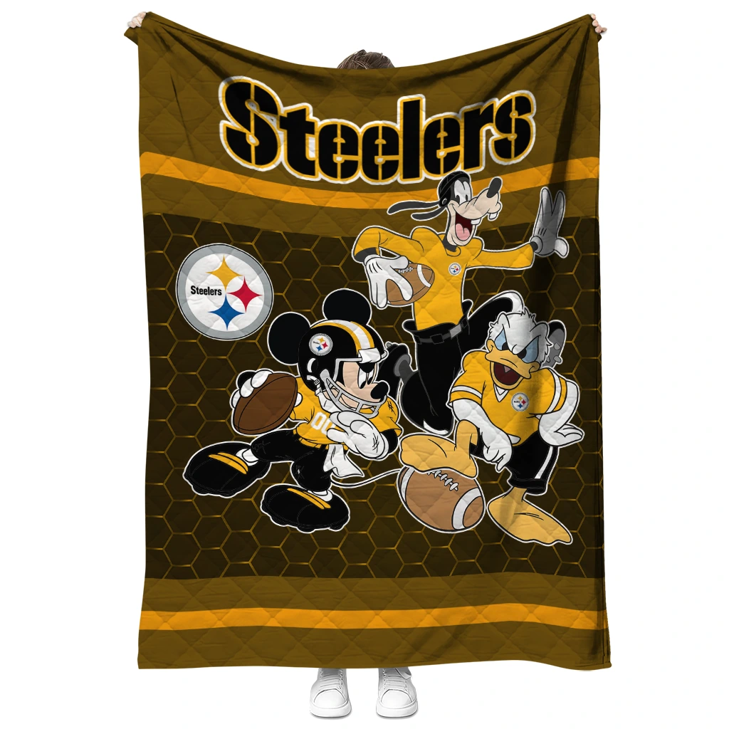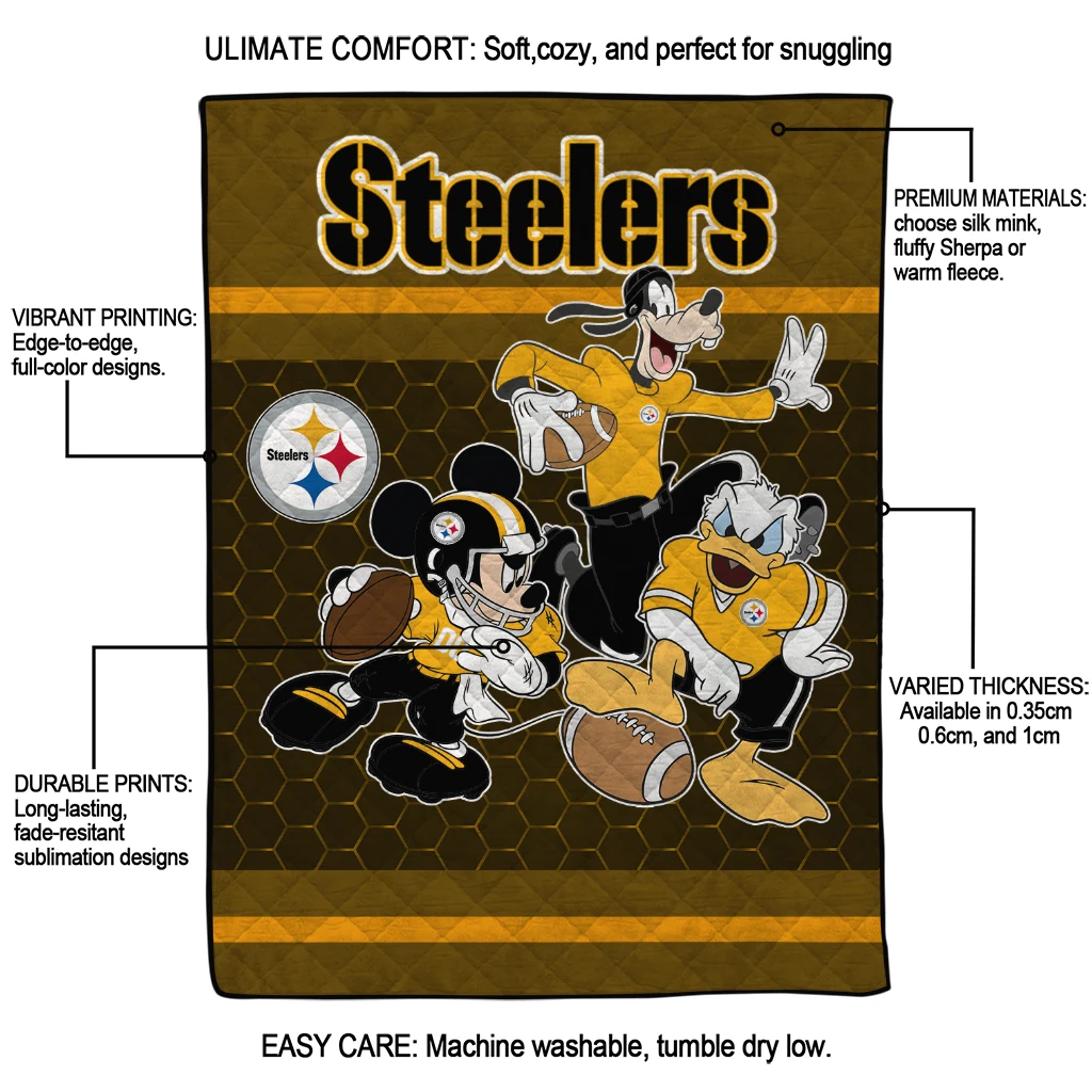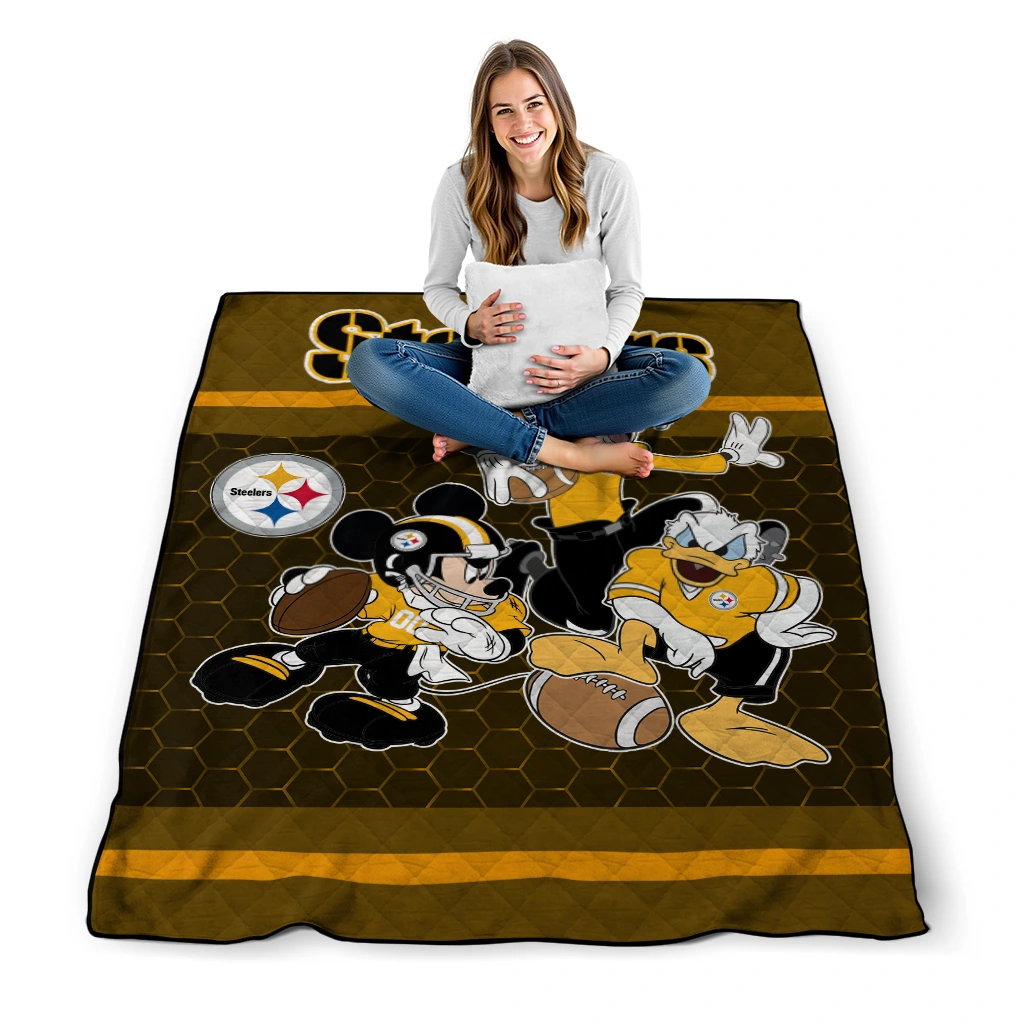 The Pittsburgh Steelers Disney Football Gold Quilt Blanket is more than a blanket—it’s everyday comfort, thoughtfully made. Crafted from premium quilting fabric with a soft microfiber touch, it offers a smooth hand-feel and lasting coziness. Layered quilting with a cotton-filled core provides adaptable warmth across seasons while maintaining a clean, tailored look on your bed or sofa.