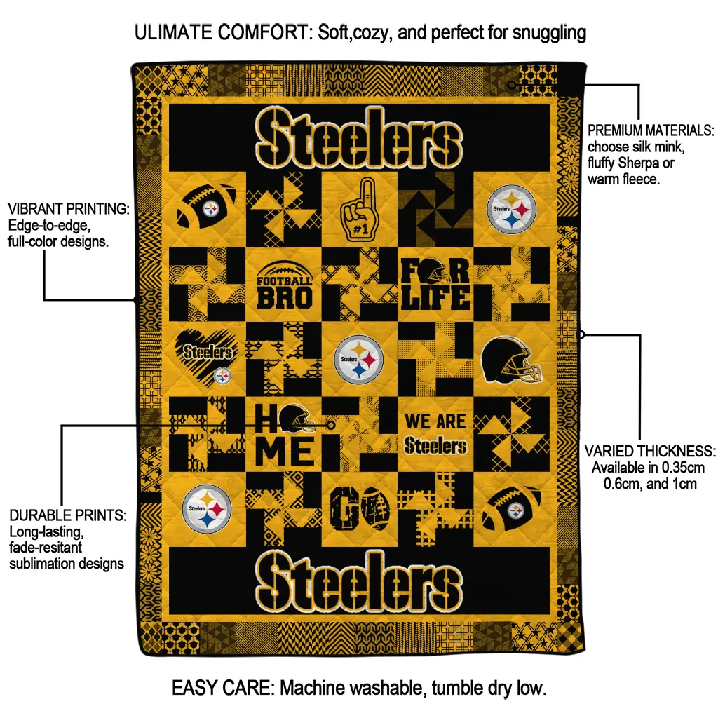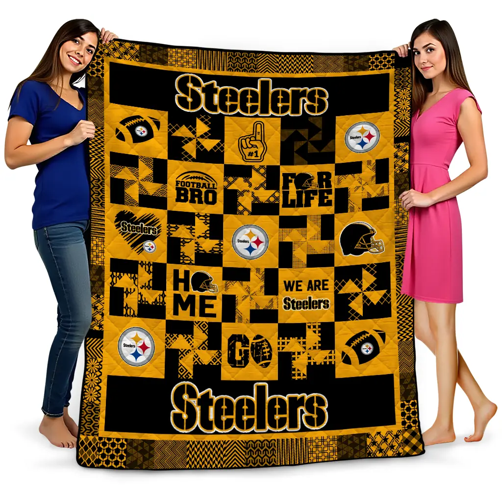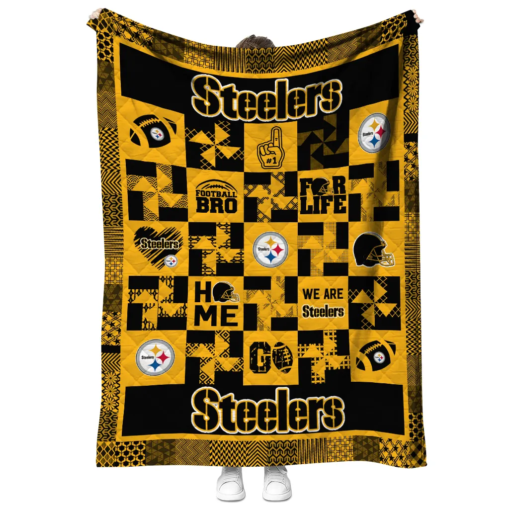 Pittsburgh Steelers Helmet Heart Gold Quilt Blanket
