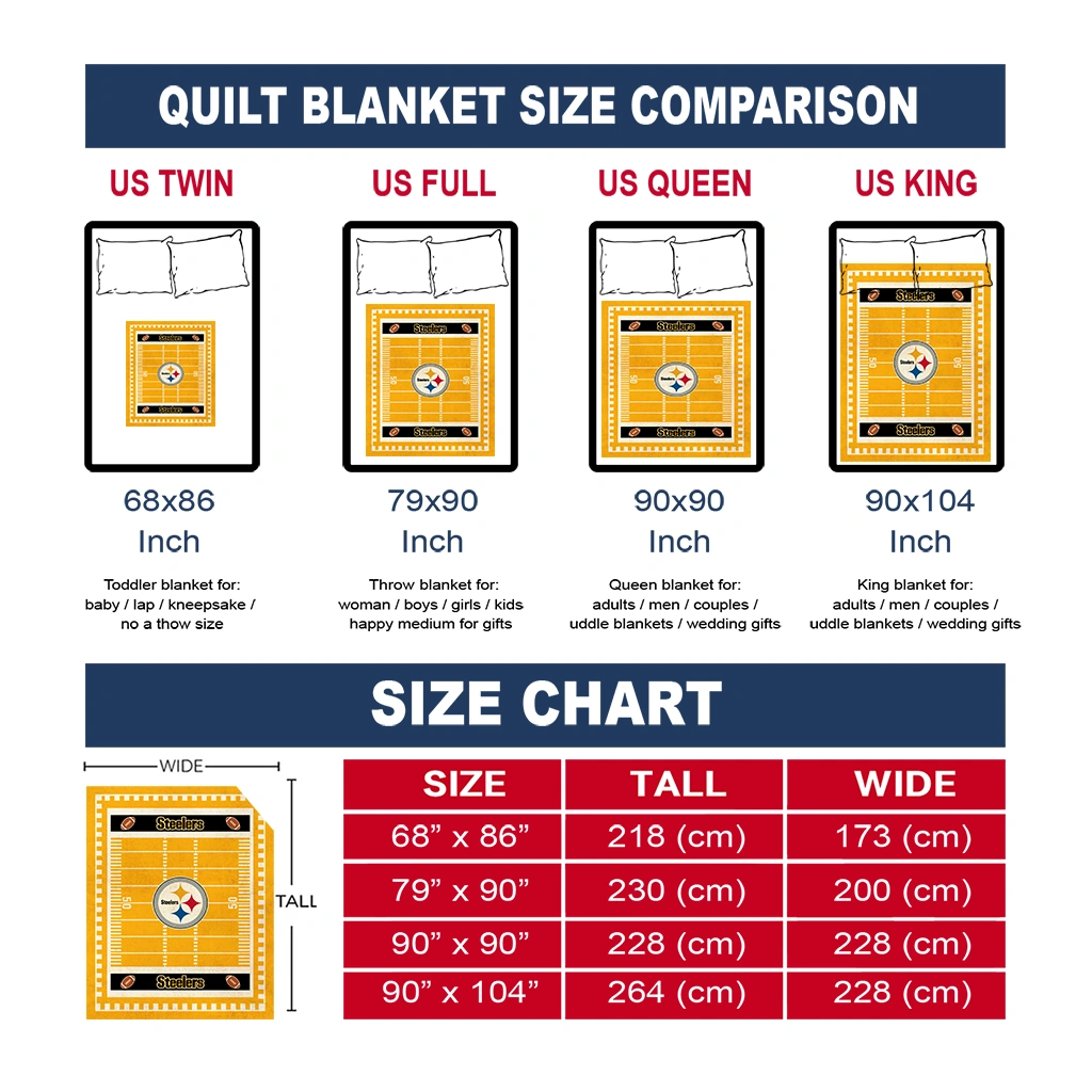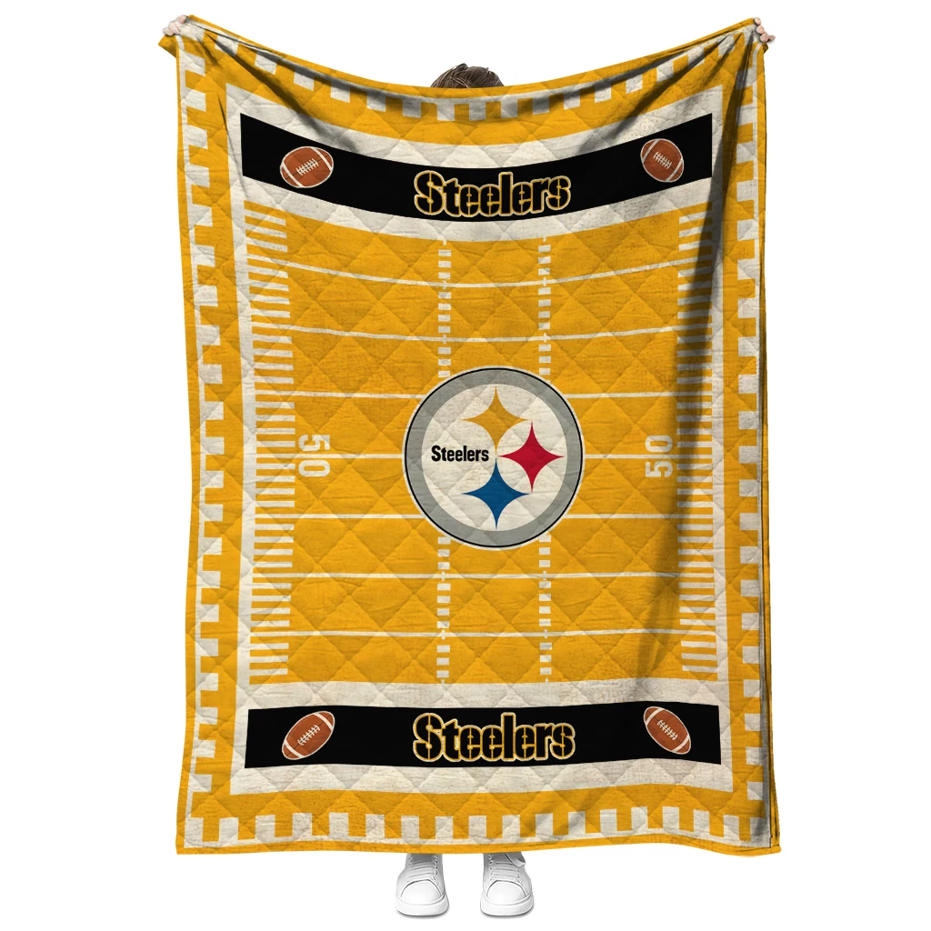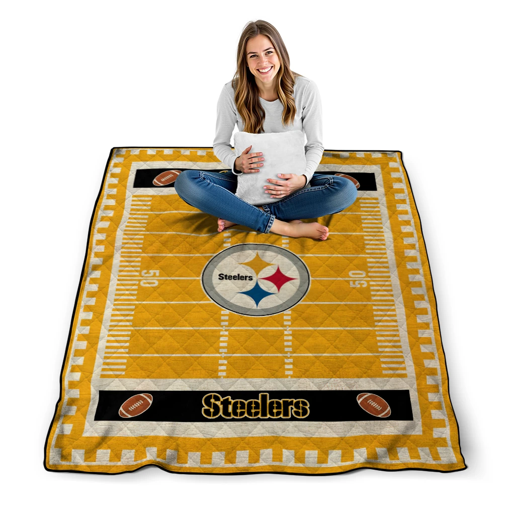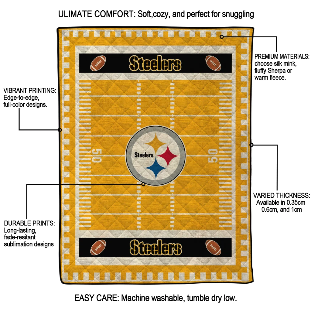 The Pittsburgh Steelers Mickey Player Gold Quilt Blanket is more than a blanket—it’s everyday comfort, thoughtfully made. Crafted from premium quilting fabric with a soft microfiber touch, it offers a smooth hand-feel and lasting coziness. Layered quilting with a cotton-filled core provides adaptable warmth across seasons while maintaining a clean, tailored look on your bed or sofa.