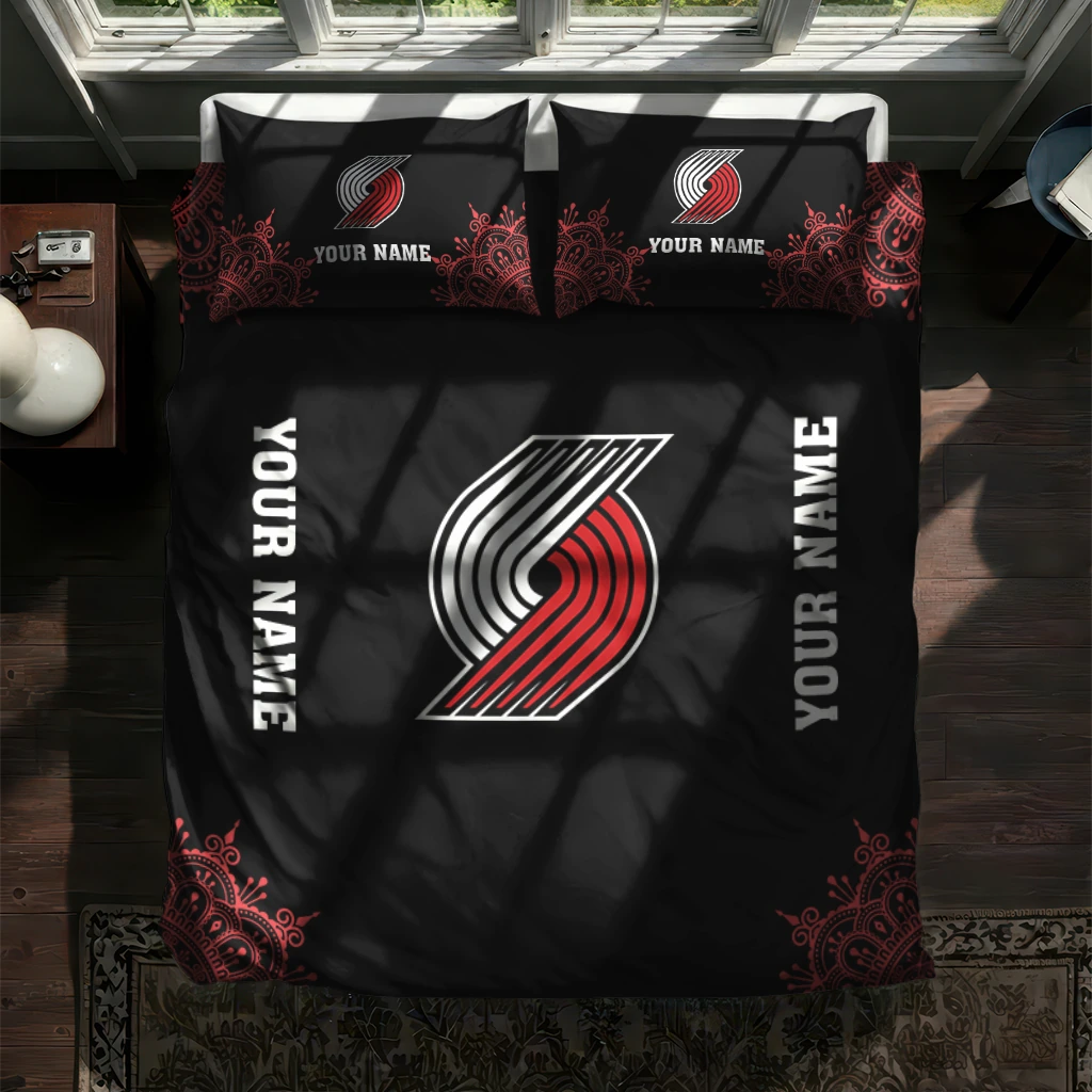 Portland Trail Blazers Bedding Set – Customized Mandala Lacework Black Red