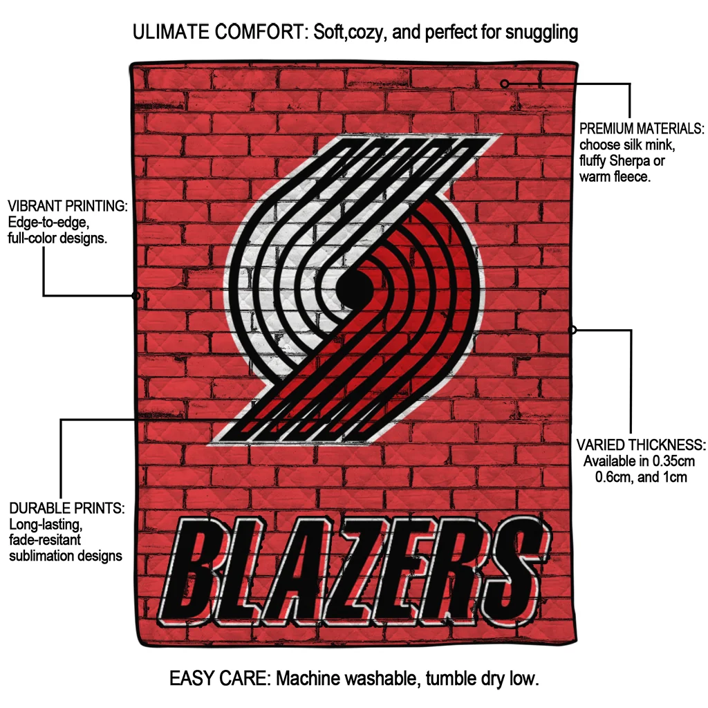 The Portland Trail Blazers Brick Grid Red Quilt Blanket is more than a blanket—it’s everyday comfort, thoughtfully made. Crafted from premium quilting fabric with a soft microfiber touch, it offers a smooth hand-feel and lasting coziness. Layered quilting with a cotton-filled core provides adaptable warmth across seasons while maintaining a clean, tailored look on your bed or sofa.