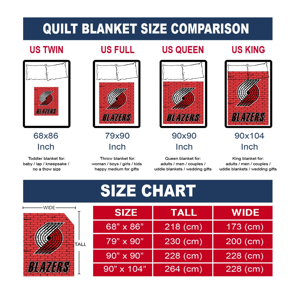 Wrap yourself in warmth and pride with the Portland Trail Blazers Brick Grid Red Quilt Blanket from the Portland Trail Blazers Blankets collection at Yes That Blanket. Made from 100% premium quilting-weight polyester blended with a touch of microfiber, this quilt offers a smooth, soft finish you’ll love. Choose between two quilting styles—Stipple or Diagonal—and enjoy the comfort of a cotton-filled layer inside that adds extra coziness for every season. The border is available in classic black or white, giving your design a clean, timeless edge.