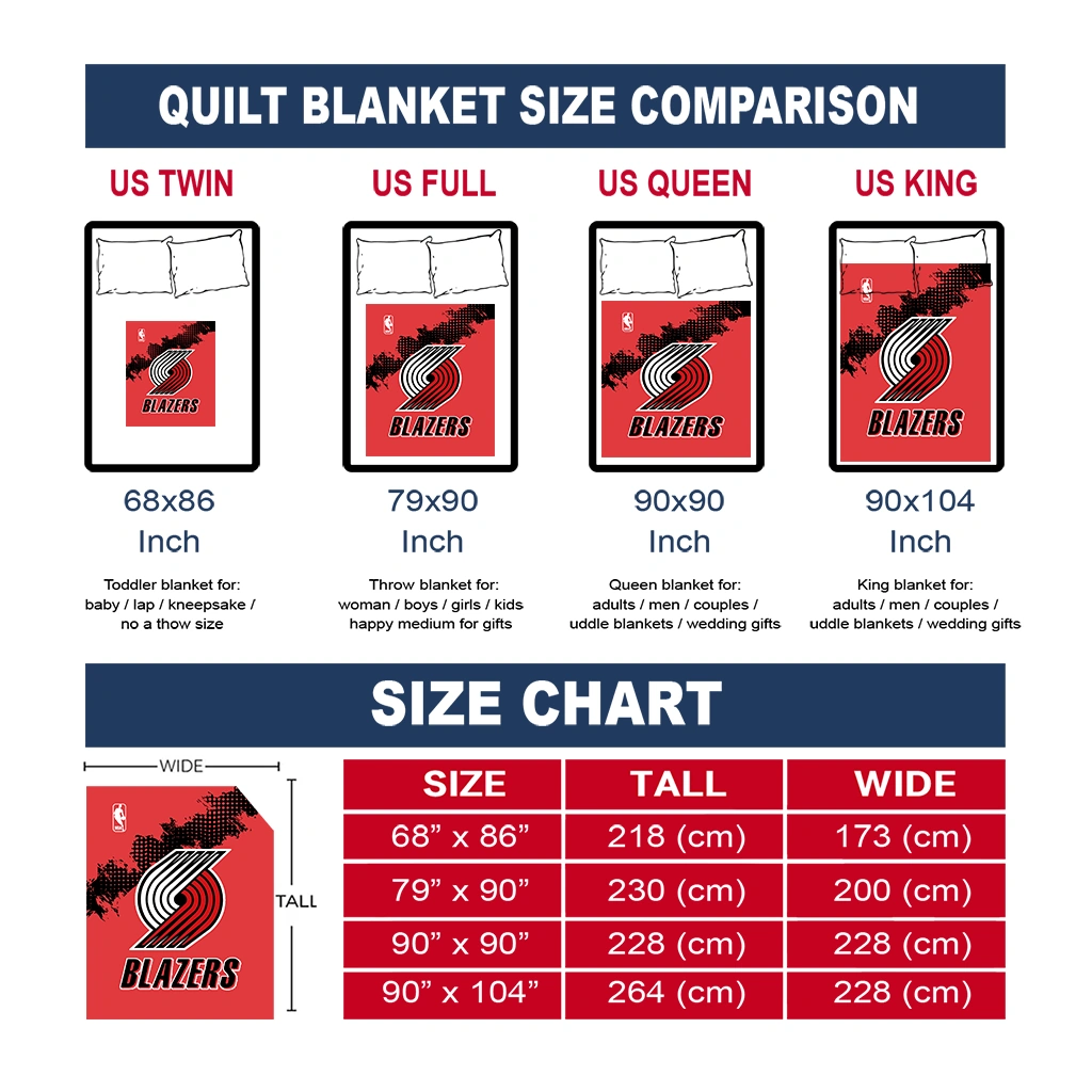 Wrap yourself in warmth and pride with the Portland Trail Blazers NBA Grunge Red Quilt Blanket from the Portland Trail Blazers Blankets collection at Yes That Blanket. Made from 100% premium quilting-weight polyester blended with a touch of microfiber, this quilt offers a smooth, soft finish you’ll love. Choose between two quilting styles—Stipple or Diagonal—and enjoy the comfort of a cotton-filled layer inside that adds extra coziness for every season. The border is available in classic black or white, giving your design a clean, timeless edge.