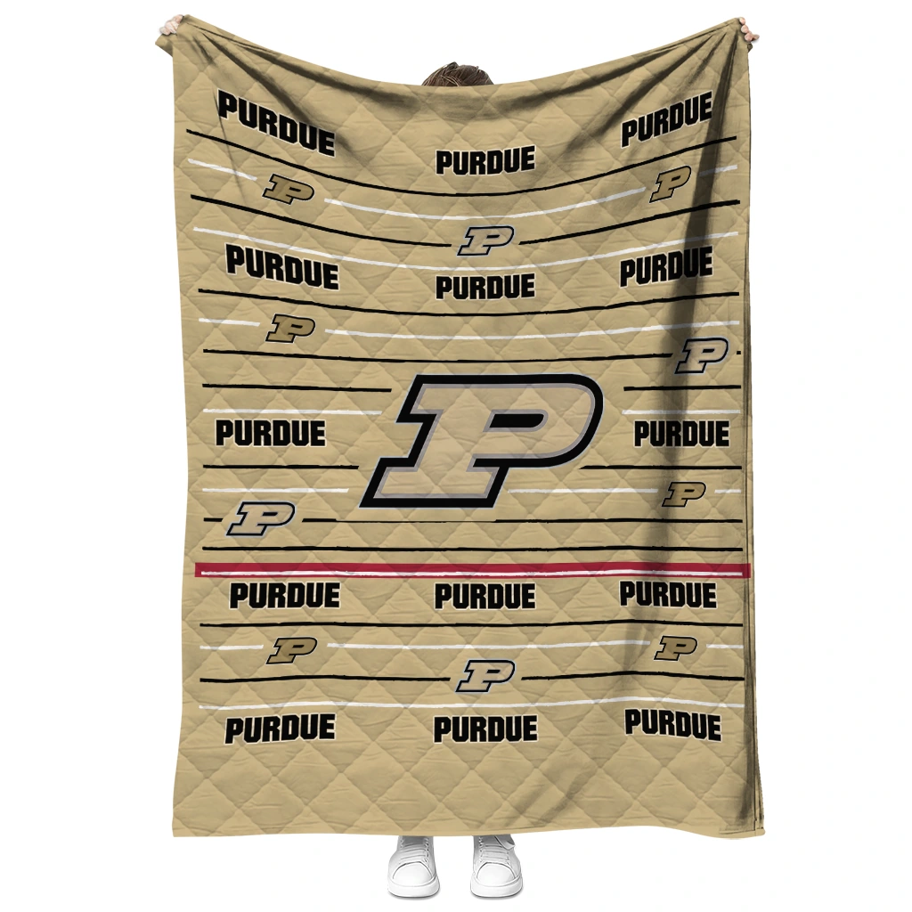 Wrap yourself in warmth and pride with the Purdue Boilermakers Handdrawn Stripes Gold Quilt Blanket from the Purdue Boilermakers Blankets collection at Yes That Blanket. Made from 100% premium quilting-weight polyester blended with a touch of microfiber, this quilt offers a smooth, soft finish you’ll love. Choose between two quilting styles—Stipple or Diagonal—and enjoy the comfort of a cotton-filled layer inside that adds extra coziness for every season. The border is available in classic black or white, giving your design a clean, timeless edge.