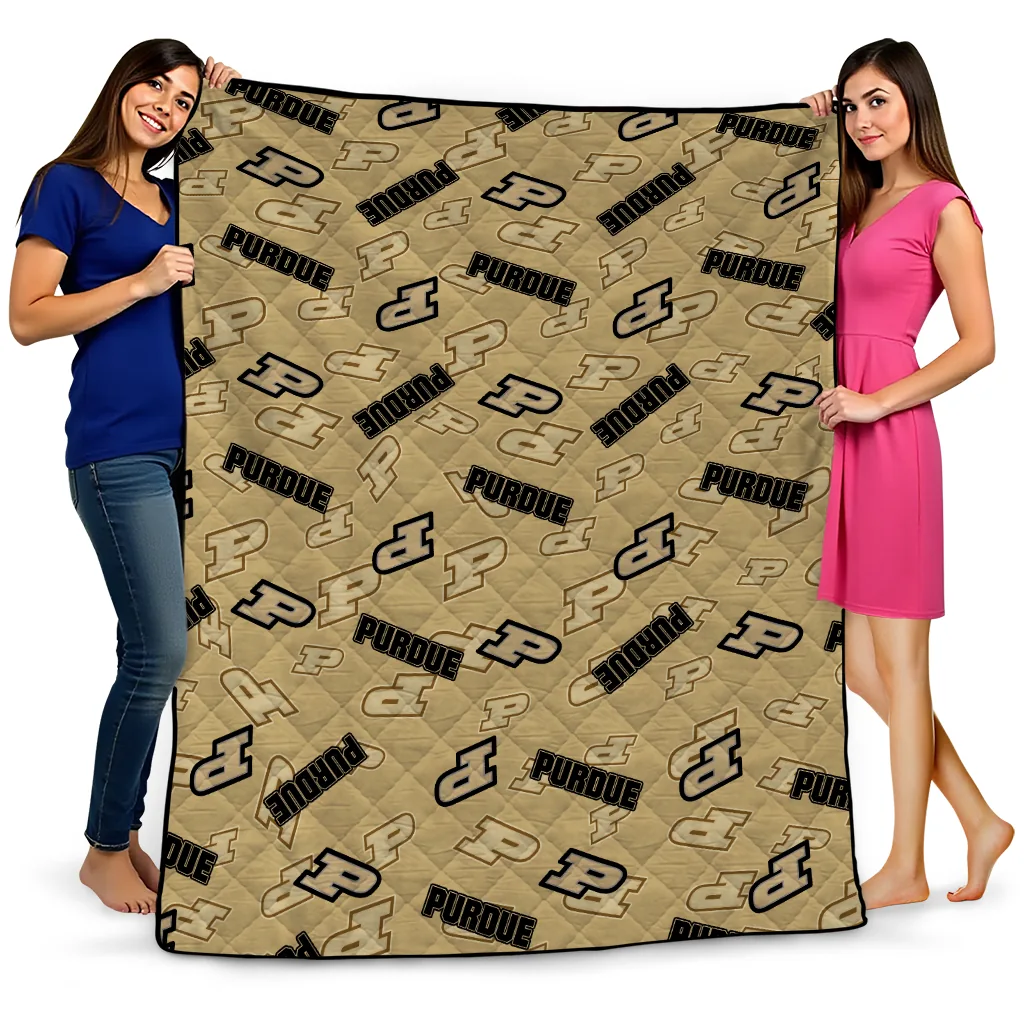 Wrap yourself in warmth and pride with the Purdue Boilermakers Solid Classic Gold Quilt Blanket from the Purdue Boilermakers Blankets collection at Yes That Blanket. Made from 100% premium quilting-weight polyester blended with a touch of microfiber, this quilt offers a smooth, soft finish you’ll love. Choose between two quilting styles—Stipple or Diagonal—and enjoy the comfort of a cotton-filled layer inside that adds extra coziness for every season. The border is available in classic black or white, giving your design a clean, timeless edge.