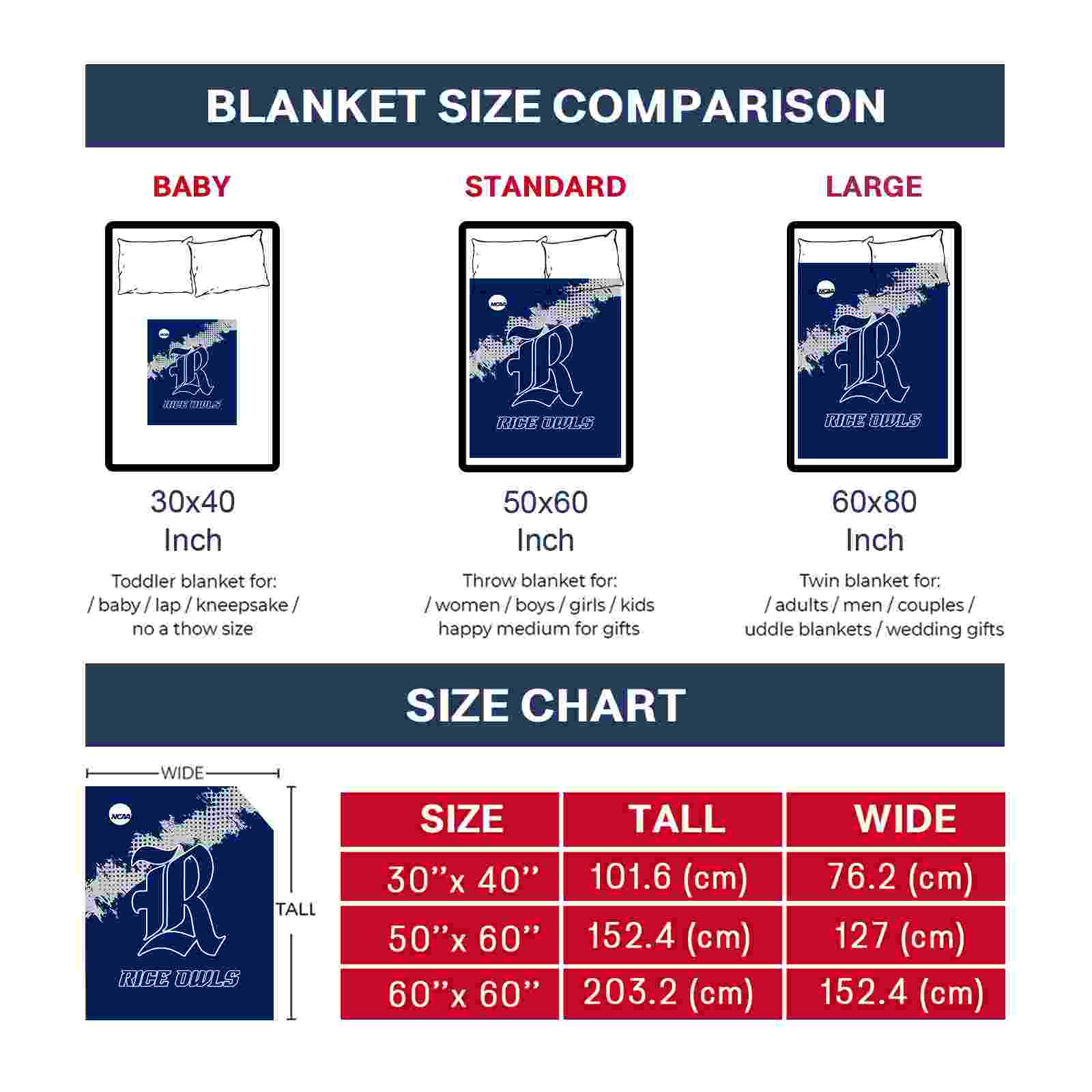 Without a doubt, the Rice Owls Grunge Texture Navy Blue Blanket from Rice Owls Blankets collection is offering true fans a chance to showcase passion in a cool way. Personalize it with your favorite team’s logo or a meaningful name to make it uniquely yours. Isn’t that great? The full-color print ensures vibrant, edge-to-edge designs, bringing your sports enthusiasm to life!
