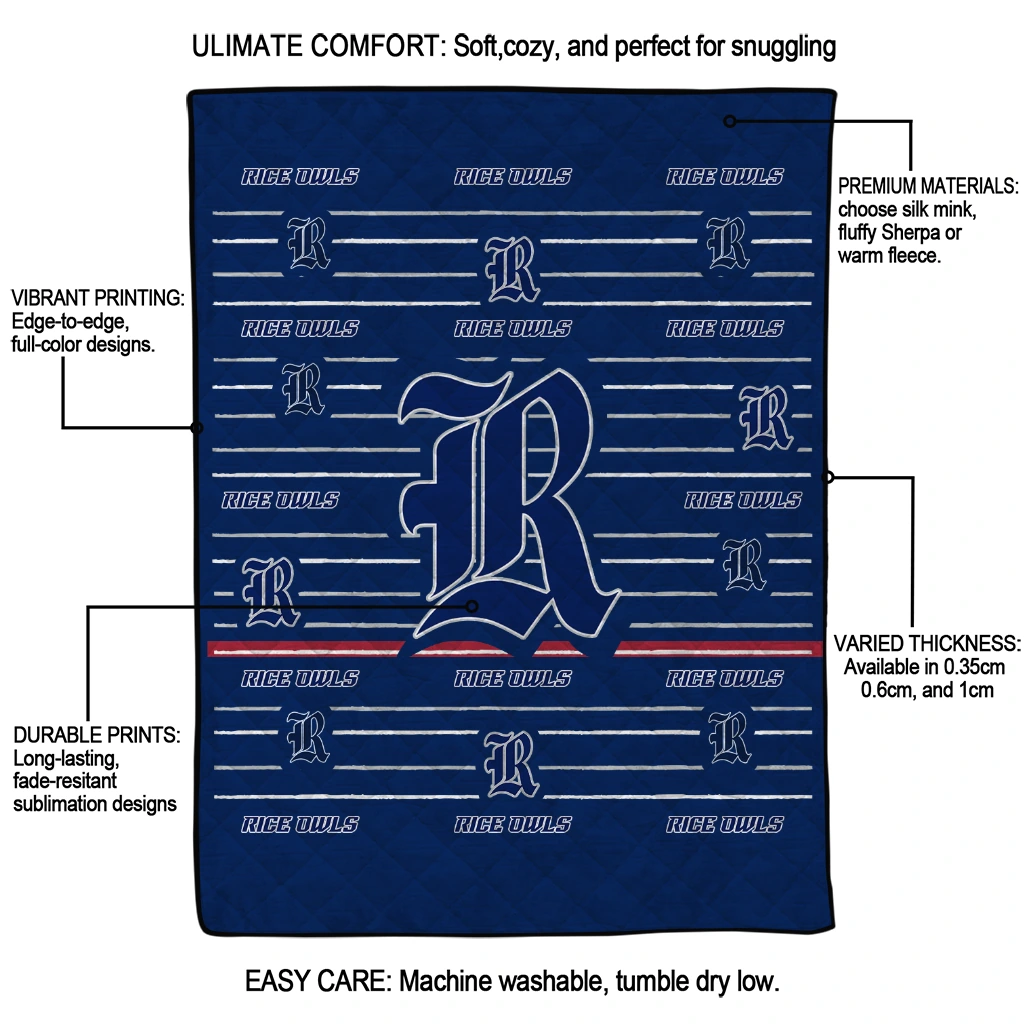 Wrap yourself in warmth and pride with the Rice Owls Handdrawn Stripes Navy Blue Quilt Blanket from the Rice Owls Blankets collection at Yes That Blanket. Made from 100% premium quilting-weight polyester blended with a touch of microfiber, this quilt offers a smooth, soft finish you’ll love. Choose between two quilting styles—Stipple or Diagonal—and enjoy the comfort of a cotton-filled layer inside that adds extra coziness for every season. The border is available in classic black or white, giving your design a clean, timeless edge.